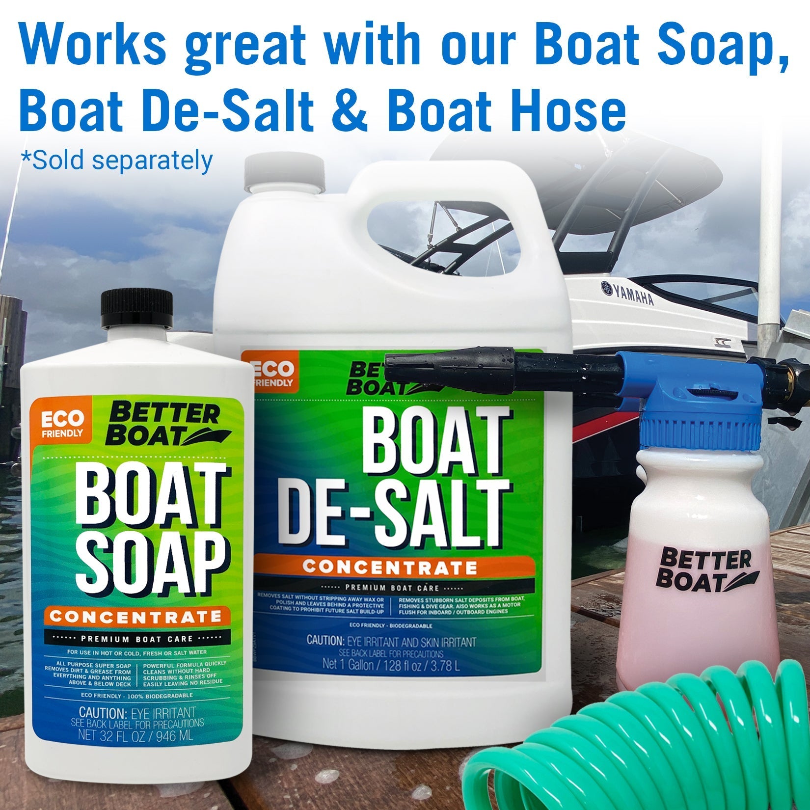 - Fits A Standard Garden Hose: Simply attach the soap foam sprayer to your garden hose and add the cleaning agent. Works great with our Better Boat Boat Hose!