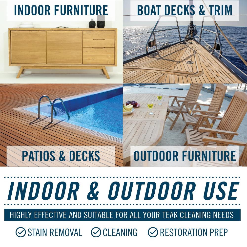 • Restores Grey & Weathered Teak To Natural Color: Removes grime from teak and other fine woods restoring beauty and warmth.