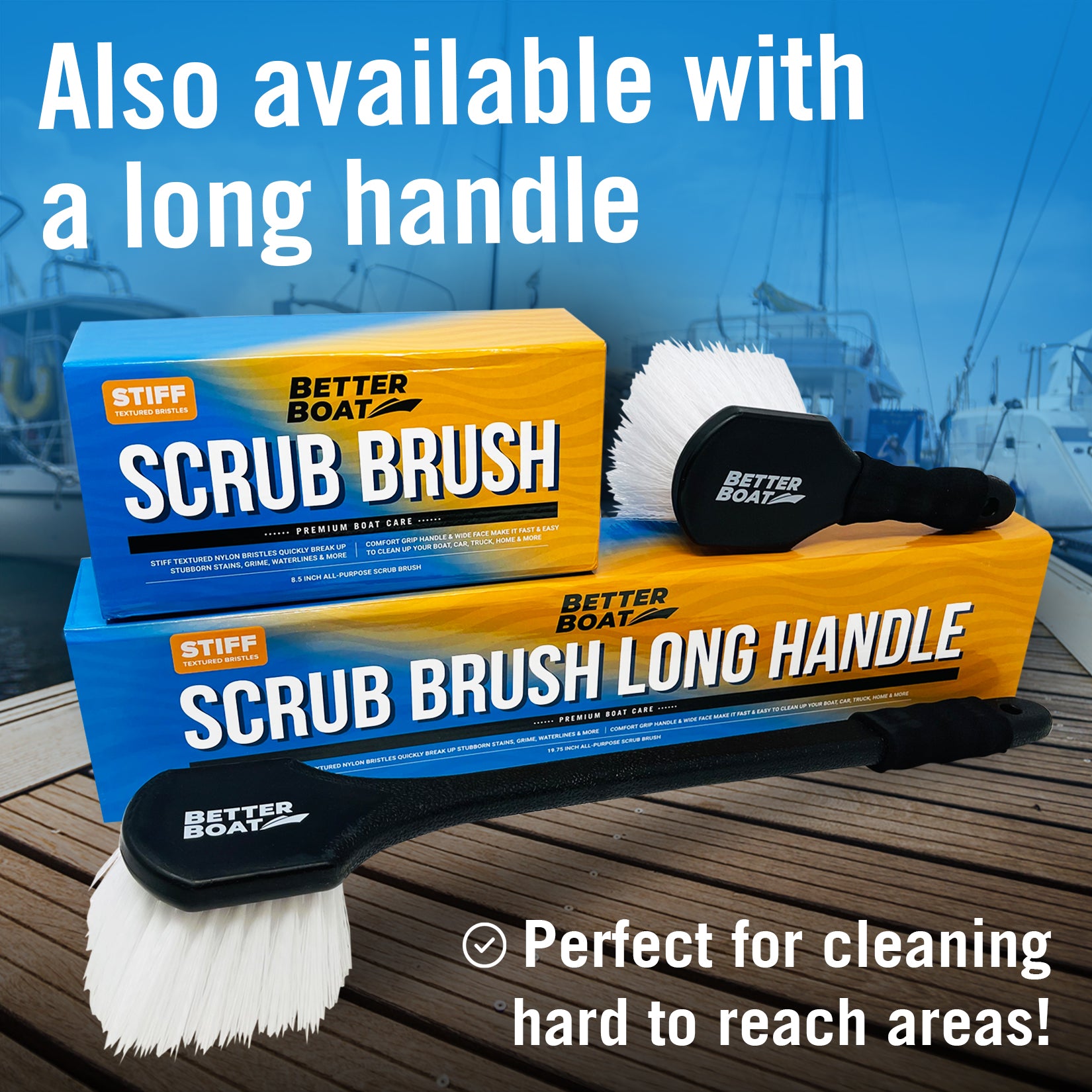 - BREAKS UP STUBBORN STAINS: Our premium marine-grade plastic scrub brush features stiff nylon bristles that quickly break up stubborn grime, grease and more. This nylon bristle scrub brush is perfect for deep cleaning heavily soiled, durable surfaces leaving them spotless. Our stiff nylon bristle brush works great to remove waterlines on your boat, build-up on decks and tackles stained grout. This heavy duty scrub brush is also ideal for cleaning up your car, RV, trailer, rims and tires!
