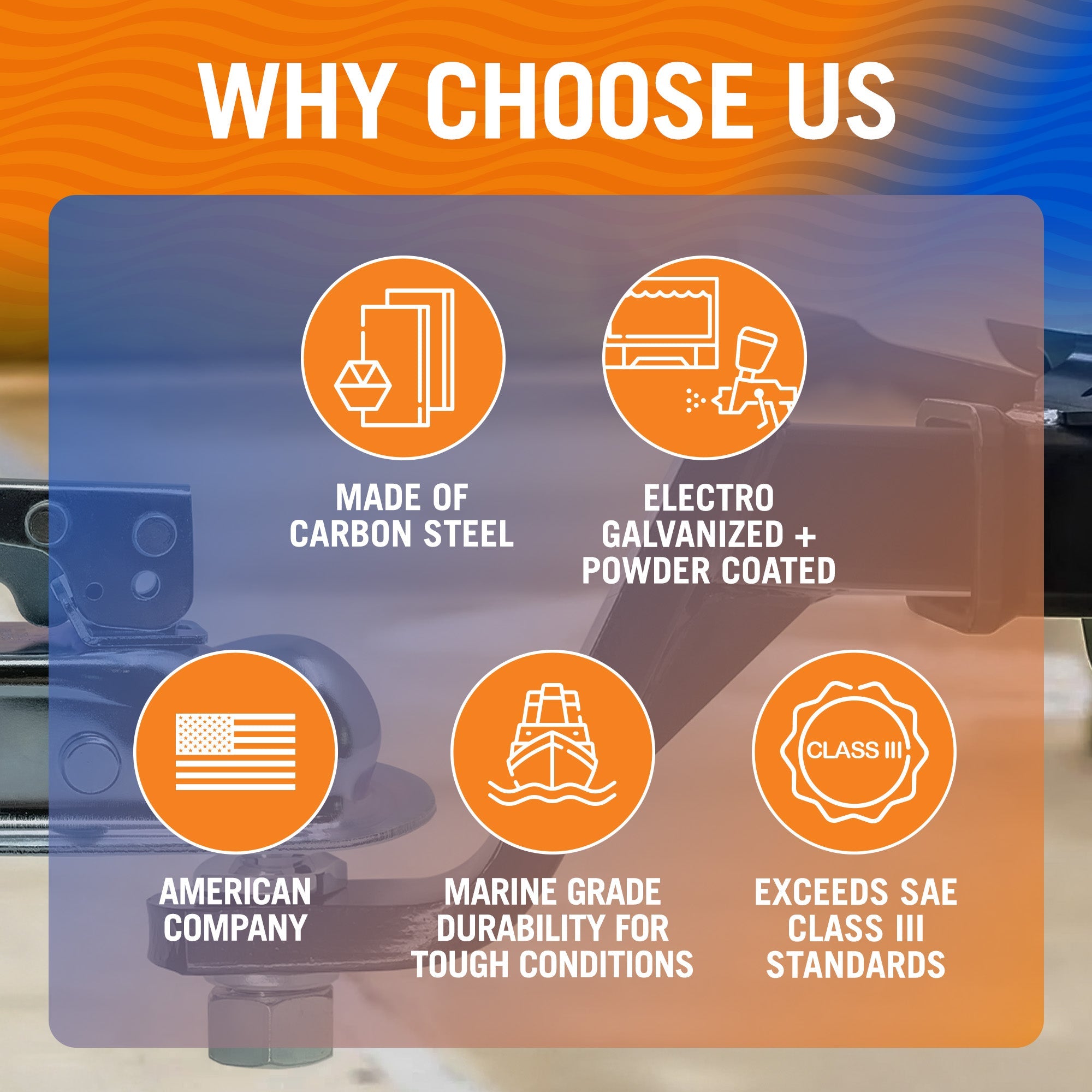 MARINE GRADE DURABILITY: Made from heavy-duty carbon steel, our towing ball mounts are electro-galvanized with an additional powder coating layer to withstand harsh conditions, including salt, snow, and rain.