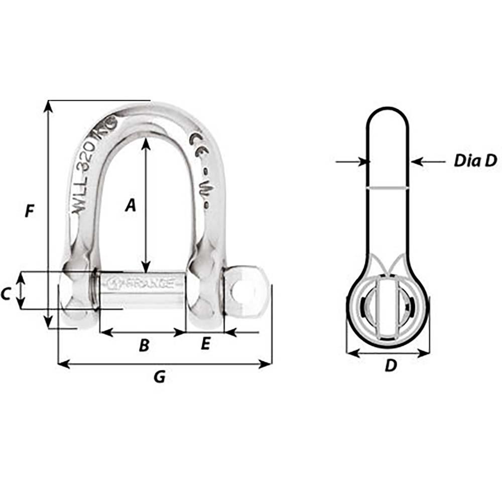 Self-Locking D Shackle - Diameter 8mm - 5/16"