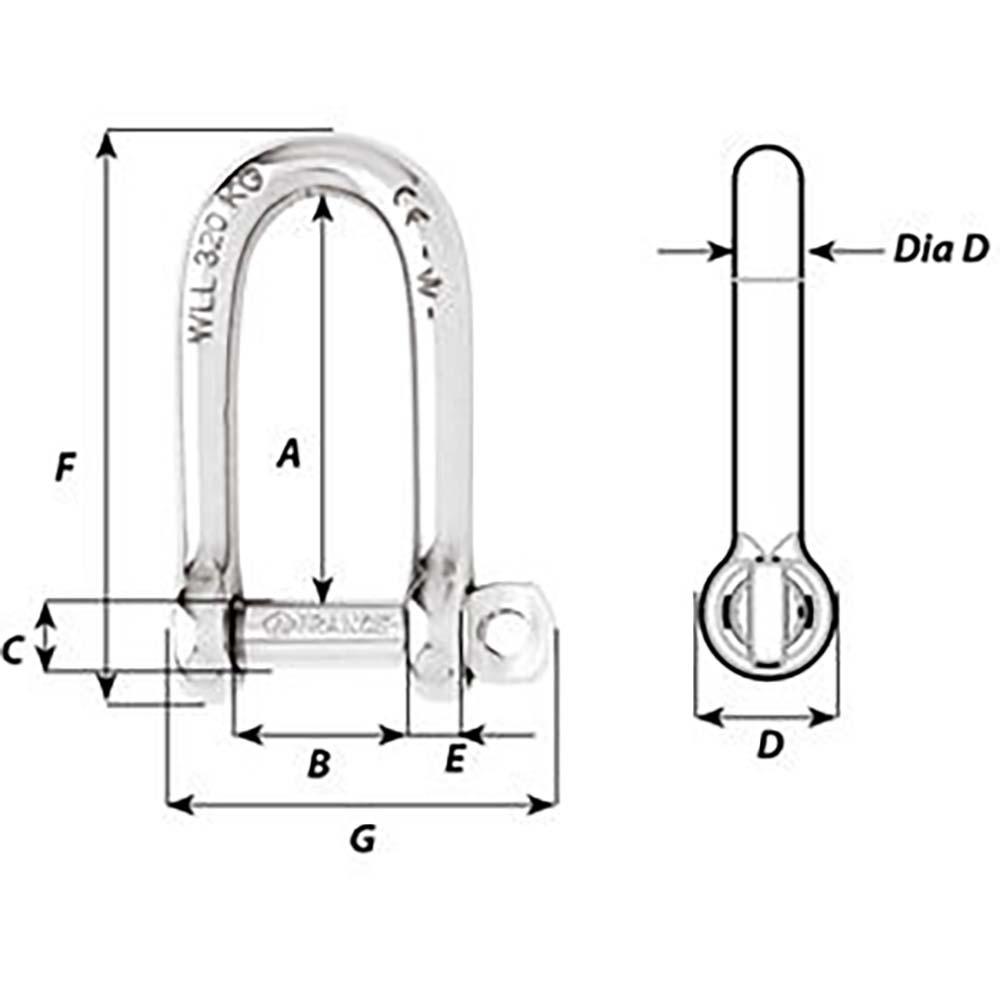 Self-Locking Long D Shackle - Diameter 8mm - 5/16"
