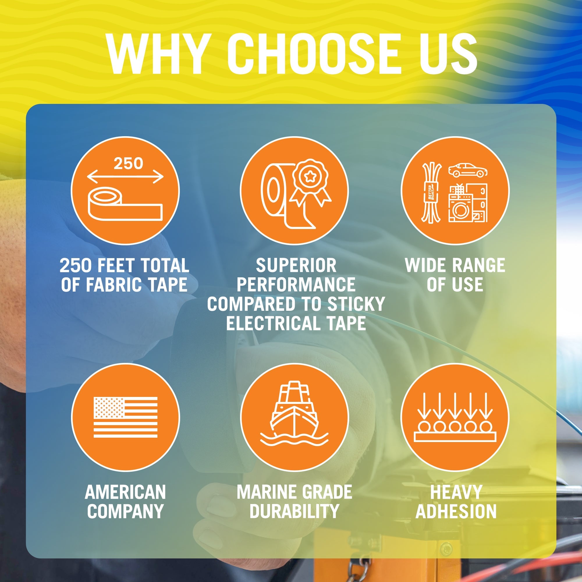 - EXCEPTIONAL VALUE AND ADHESION: Benefit from our 3-pack or 5-pack of cloth wire loom tape, totaling 150 feet or 250 feet of high-quality fabric tape. Each 50-foot roll provides strong performance, outshining conventional sticky, messy electrical tapes.