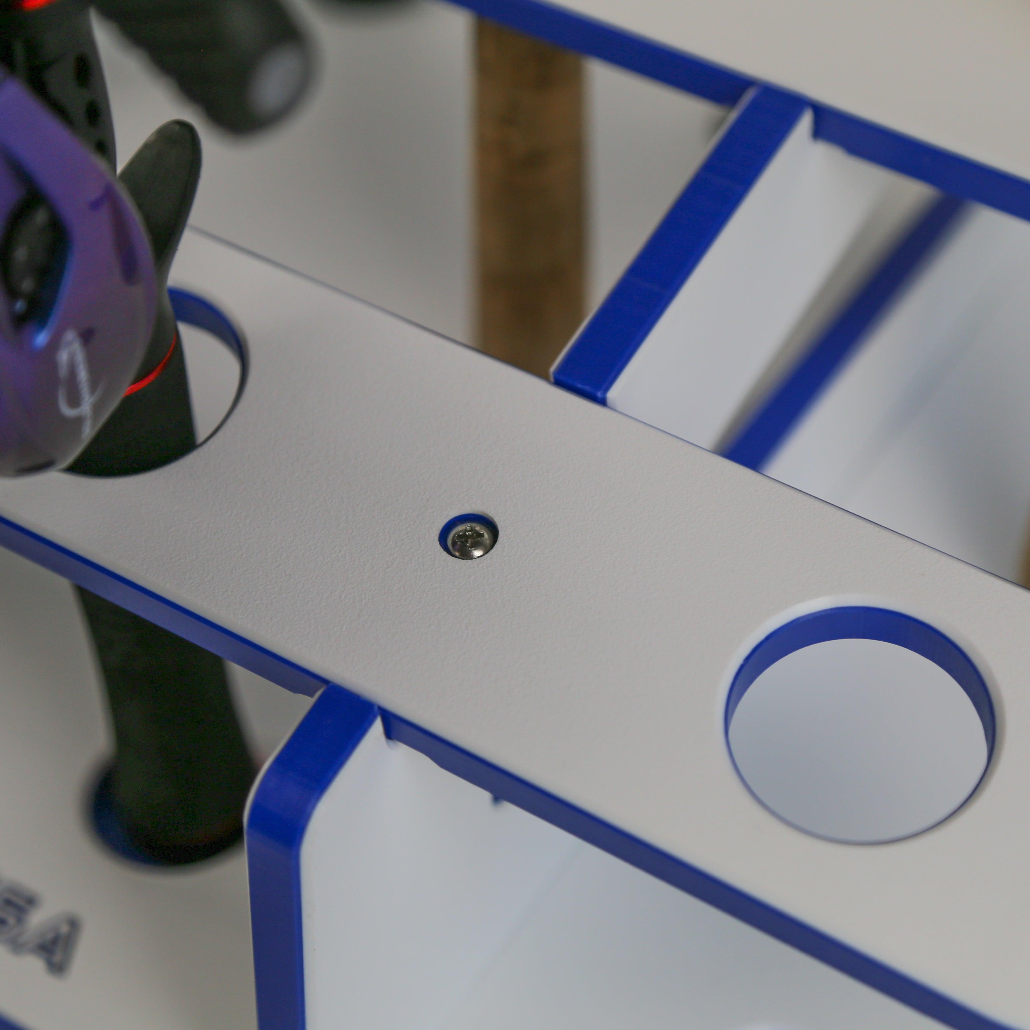 The TRAPSKI Fishing Rod Storage Rack Holder is perfect for those who love spending time on the water but hate the hassle of organizing their gear. With this rod holder in place, your fishing poles will always be at hand when you need them most! Organize your fishing gear with ease using our Fishing Rod Storage Rack. This rack provides a convenient and secure way to store up to 12 Fresh and/or Saltwater rod and reel combos in one location, keeping them protected from damage.