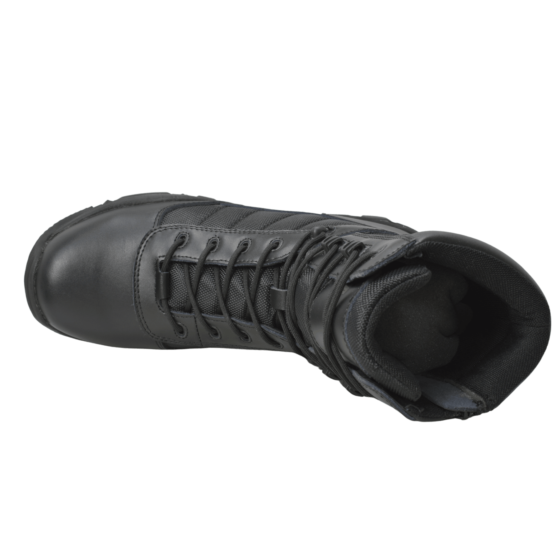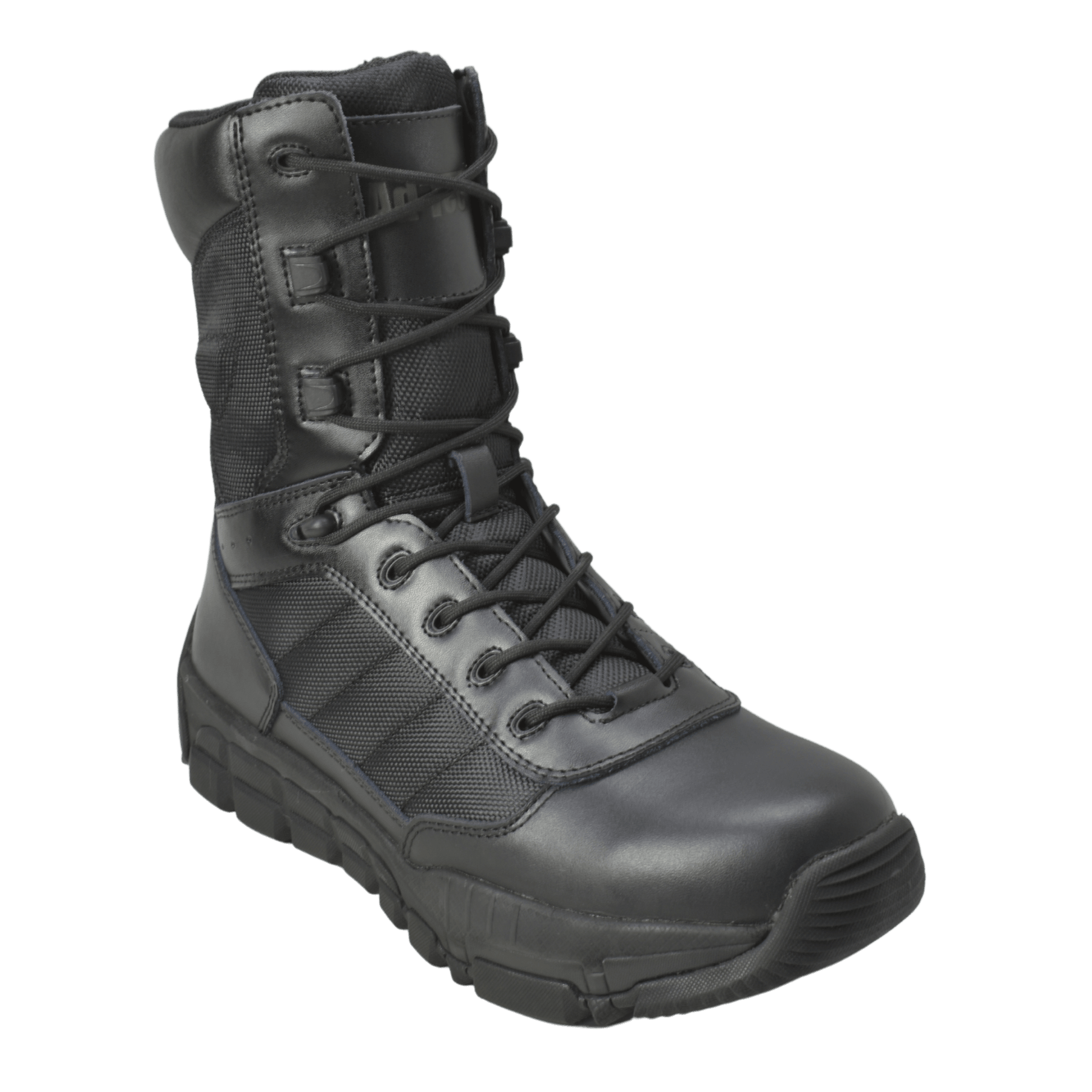 The 6" Black Tactical Boot by AdTec is made to be worn in any weather condition. Made with lightweight and durable, this boot has a waterproof full grain leather upper, as well as an oil and slip-resistant outsole that provides extreme traction on rough terrain. The side zipper allows for easy on/off, while the flexible molded outsole lets you move freely without sacrificing stability.