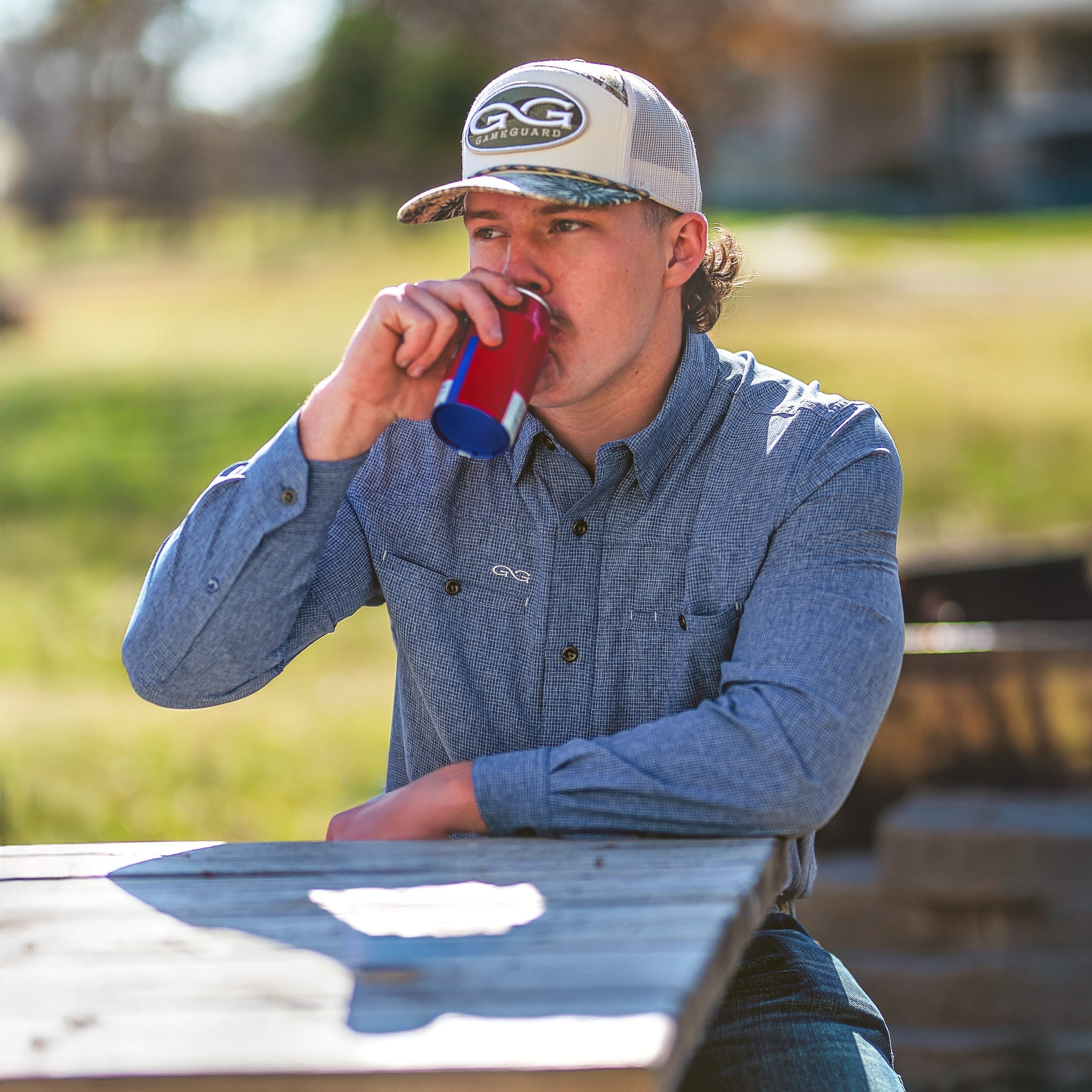 Built for the outdoorsman who does it all, the Maverick Shirt | Long Sleeve blends classic style with hardworking performance. Whether you're hunting in the field, fishing by the water, or working the ranch, this shirt moves with you thanks to mechanical stretch and lightweight comfort. Moisture-wicking fabric and Cool Feel Technology keep you dry and cool, while UPF 50+ protection shields you from the sun. Secure welt chest pockets, including a pencil divider, ensure your essentials stay within reach. Designed with a clean, classic fit and finished with a buttoned cuff placket and under-collar snaps, this shirt is rugged enough for the wild yet polished enough for campfire nights.