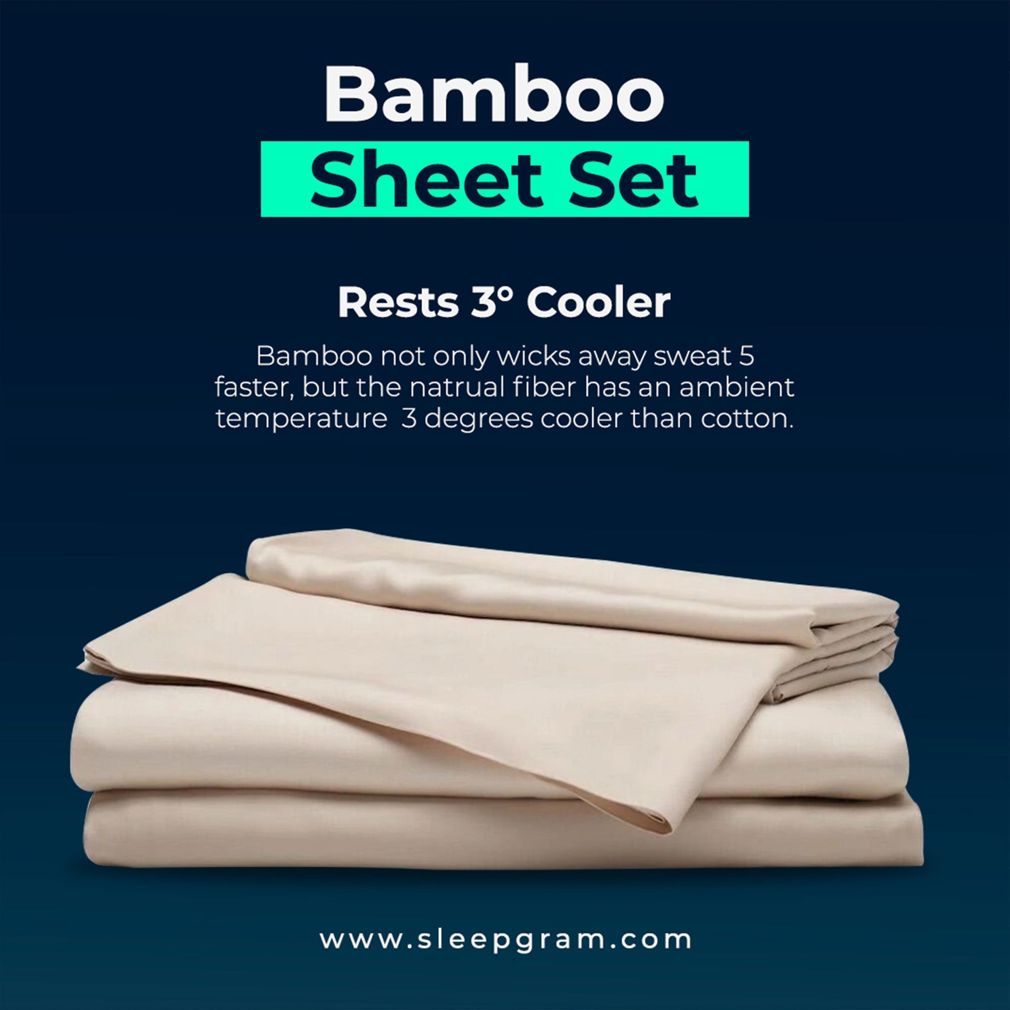 With the Sleepgram Viscose From Bamboo Cal King Bed Sheet Set with 2 Pillowcases you will get everything you need to have a comfortable ad relaxing night's sleep. This bed sheet set gives you a fitted sheet that can adapt to any size mattress, a flat sheet and 2 pillowcases.