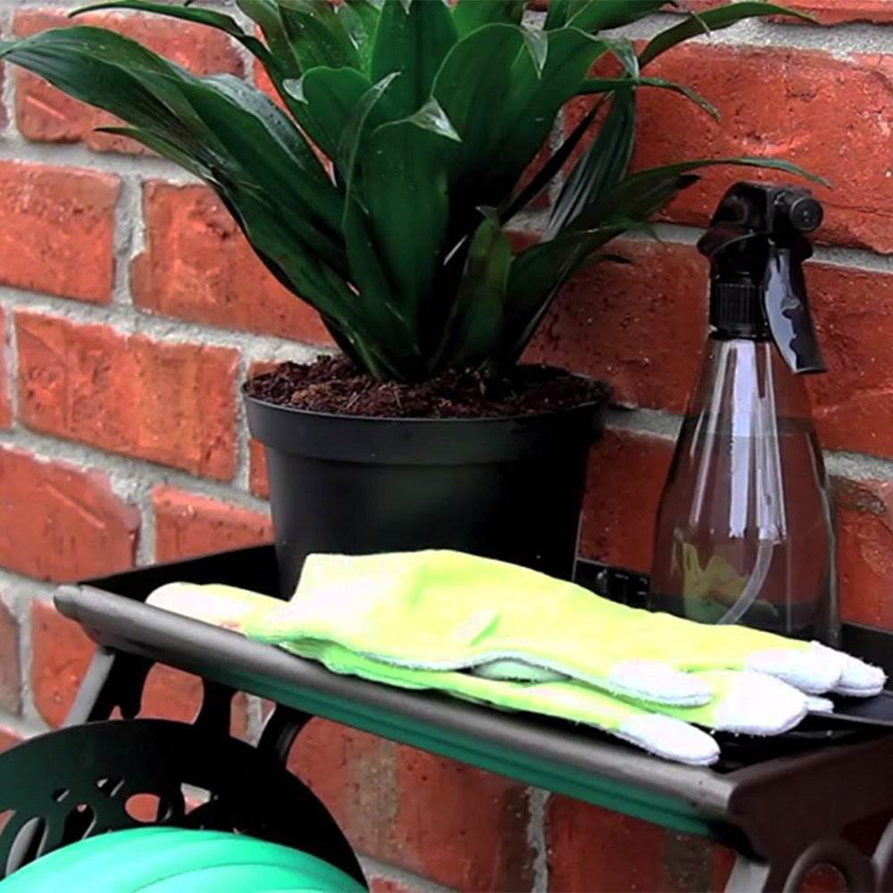 This reel holds up to 125-feet of a 5/8-inch gardening hose. That way, you no longer have to kick your hose aside. Instead, you can stand back and admire how good it looks hanging on the wall.