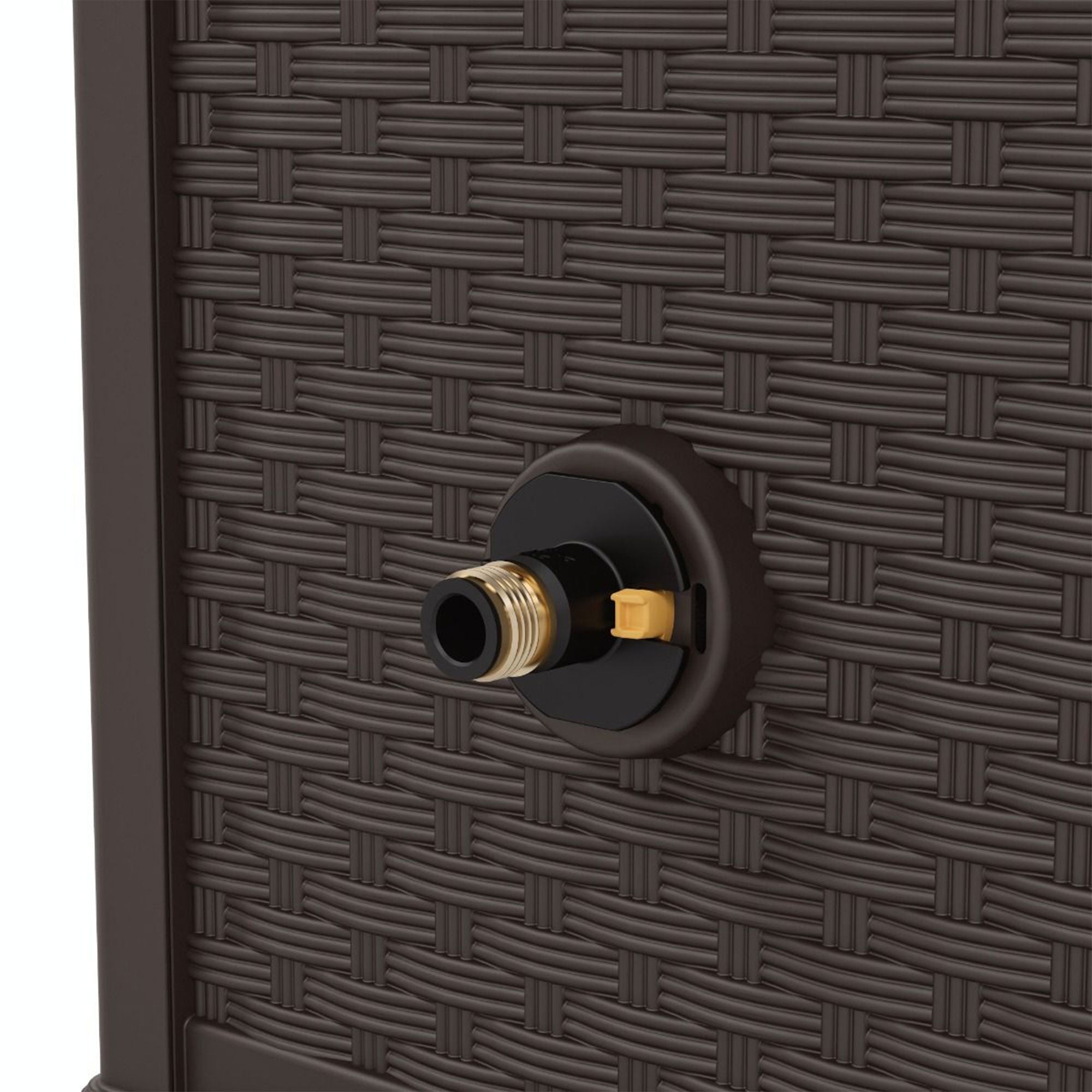This garden watering hose and reel storage box is as beautiful as it is functional, with its rugged resin construction and stylish wicker pattern designed to complement any garden décor. Featuring a Slide Trak hose guide, this garden tool eliminates the struggles of wrapping the hose by hand and allows you to manually guide the hose to ensure even winding without touching the hose. Included brass connections allow for unbeatable functionality while helping to avoid leaks, cross-threading, and damage from outdoor elements.