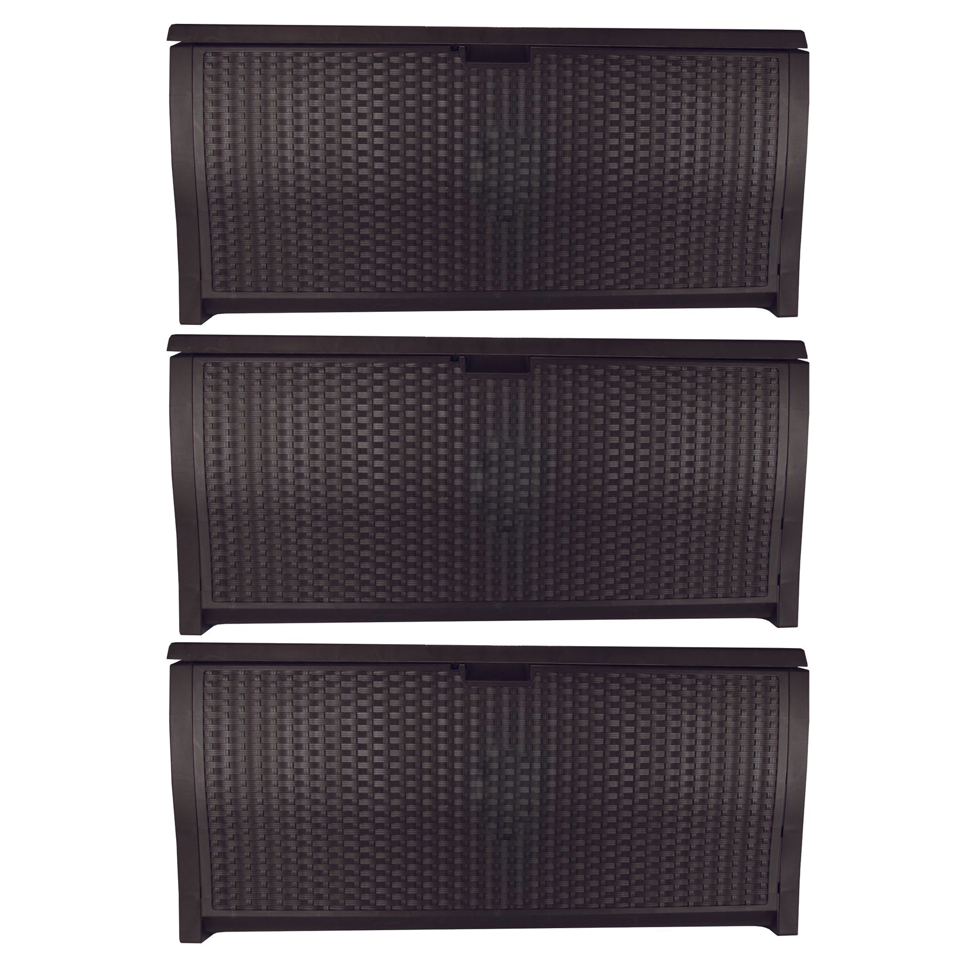 Suncast 99 Gallon Deck Garden Garage Home Wicker Resin Pool Box, Mocha (3 Pack)