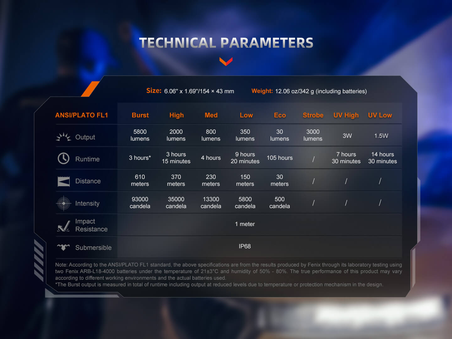 The Fenix TK35R Rechargeable High-Performance Tactical Flashlight is the ultimate tool for professionals who demand power, reliability, and versatility. Boasting a staggering 5800-lumen maximum output, this compact powerhouse combines white light and dual-level UV light outputs for unmatched utility in the field. Designed with instant burst and instant strobe functions, it provides immediate, high-intensity illumination at the touch of a button, making it ideal for tactical scenarios. The dual tail switches with FlexiSensa control toggle ensure seamless, intuitive operation, while the sliding charging port cover enhances durability.