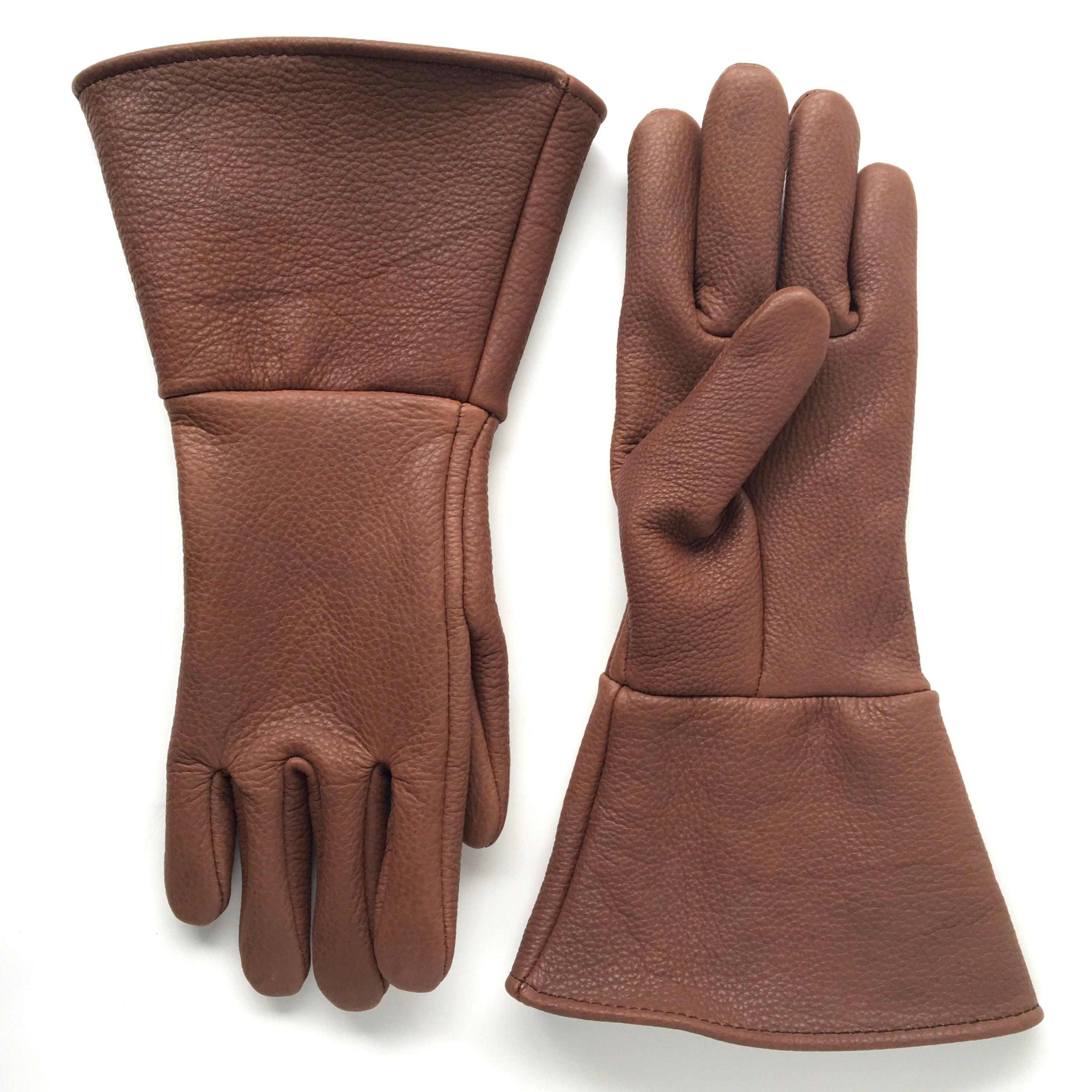 Heavy duty 4-5oz American buffalo leather. Buffalo has a very textured grain that takes several uses to break in, but is worth the time for a hard wearing glove. Buffalo leather offers our highest abrasion resistance glove and forms to your hand as you break it in with limited stretch. All purchases are cut and hand sewn to order. Please allow two weeks for product to ship! All leathers come from natural hides which may contain scarring, giving each pair its own character.