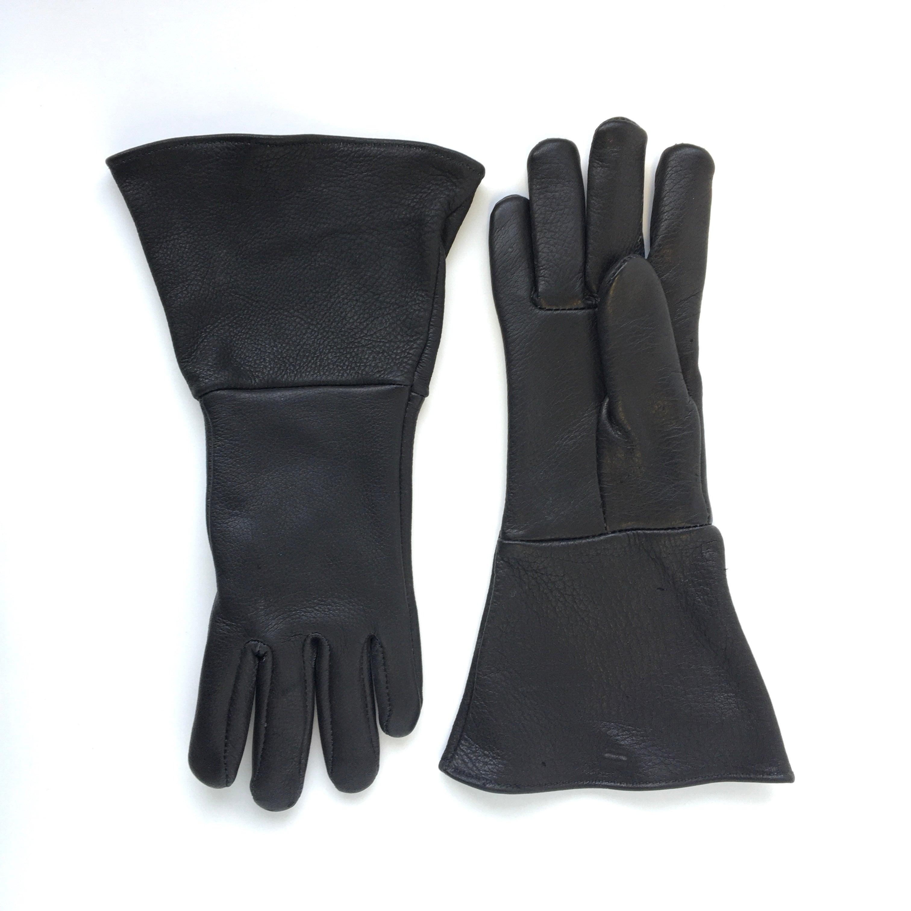 Soft and lightweight American deerskin. Deerskin has a beautiful grain finish and requires very little maintenance. Very good abrasion resistance and tolerates moisture well. The gauntlet extended cuff goes over your jacket for a warmer, more comfortable ride. All purchases are cut and hand sewn to order. Please allow two weeks for product to ship! All leathers come from natural hides which may contain scarring, giving each pair its own character.