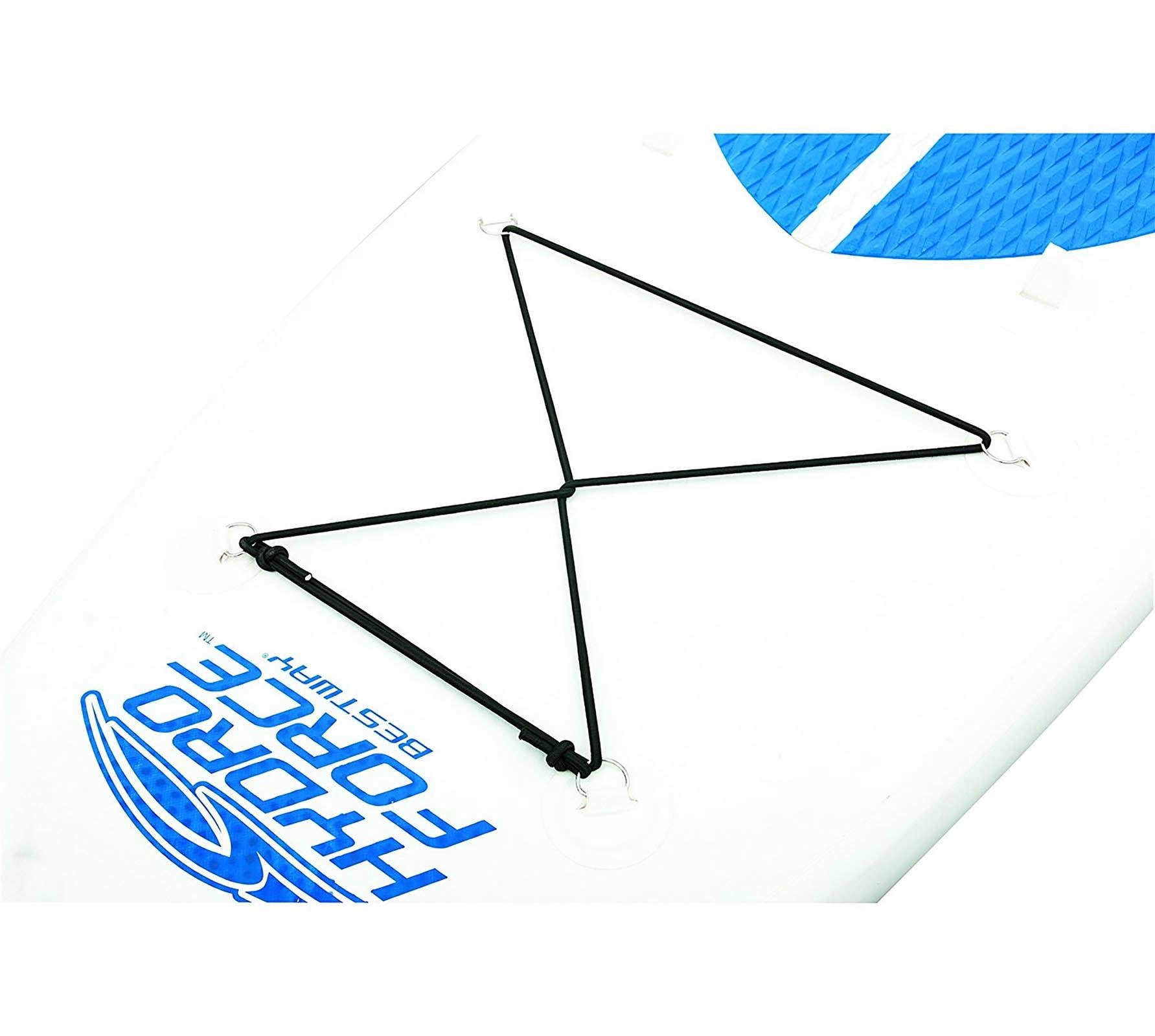 The paddle board set includes everything you need like a paddle, hand pump, travel bag, and pressure gauge. So get out there and have a water adventure with the Bestway Hydro-Force White Cap SUP.