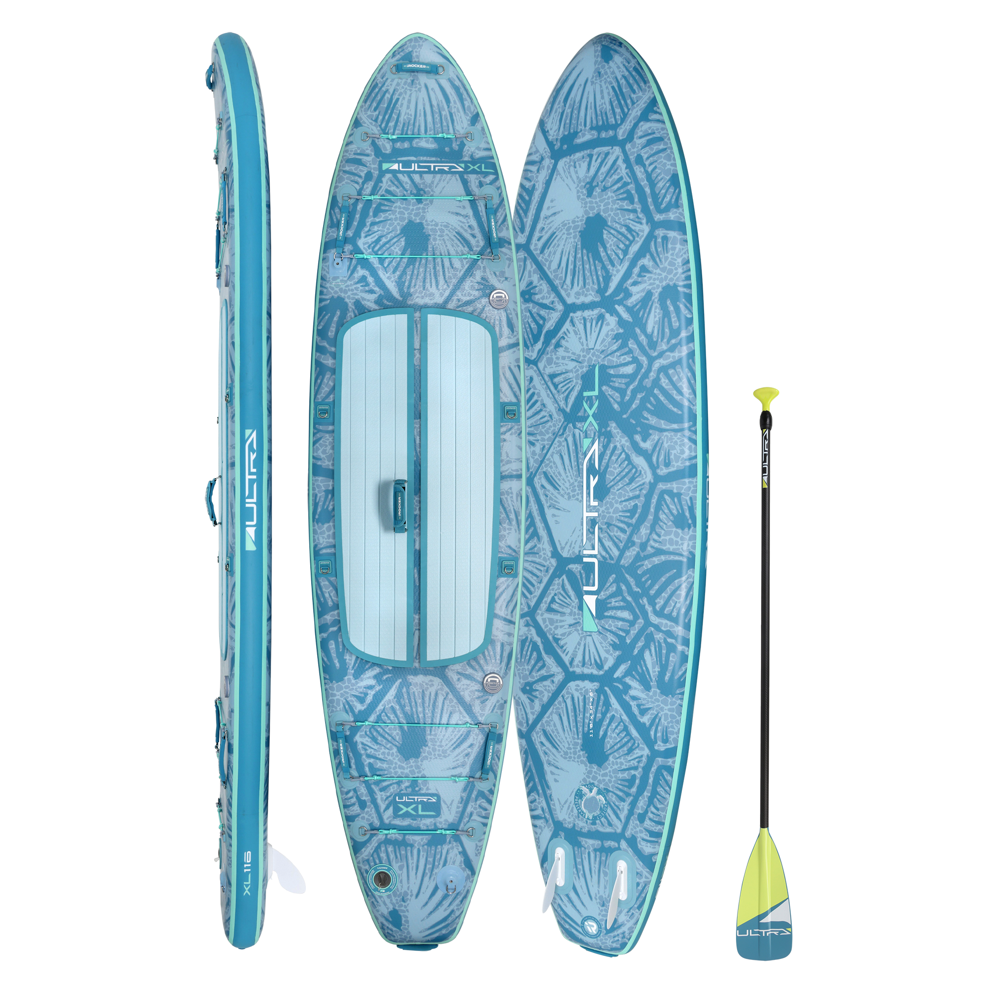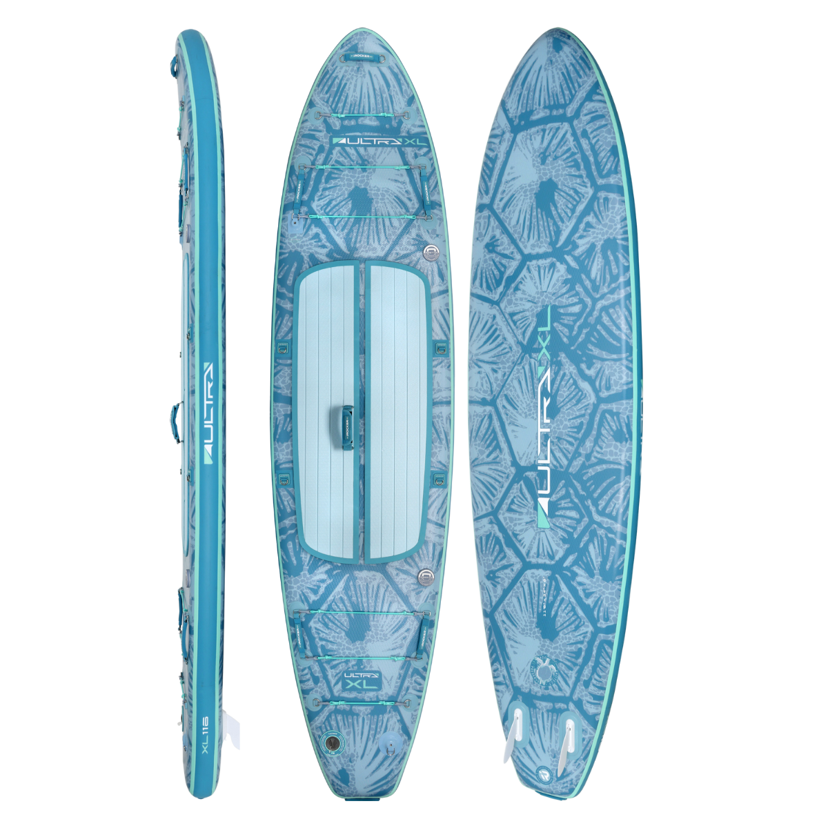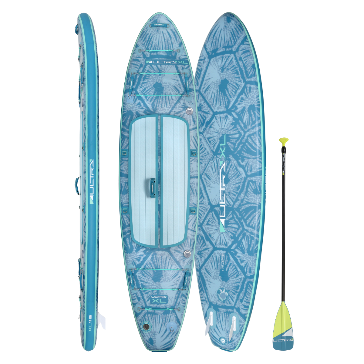 The XL ULTRA™ is the most spacious board in the ULTRA™ lineup—measuring 11’6” long and 34” wide—for ultimate stability whether you're paddling solo, with kids or pets, or hauling extra gear. Despite its size, it remains surprisingly light (around 19–21 lbs) and folds down 50% smaller into a compact backpack for effortless storage and travel.