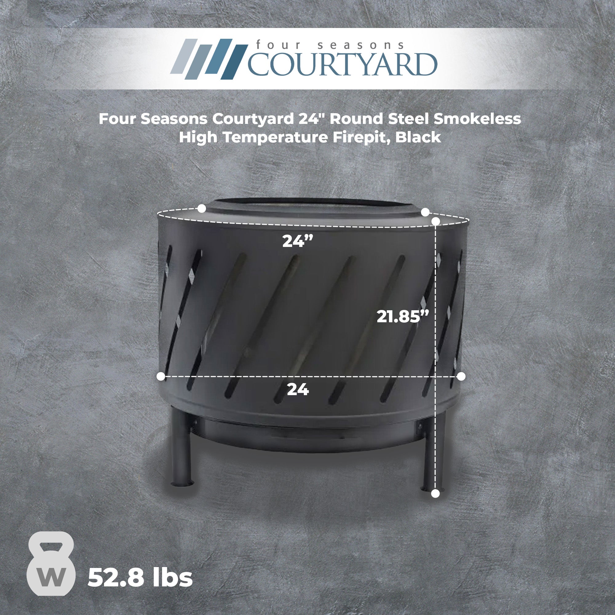 Discover the Four Seasons Courtyard 24-inch Round Steel Smokeless Fire Pit, a seamless blend of style, functionality, and durability crafted to elevate your outdoor living experience.