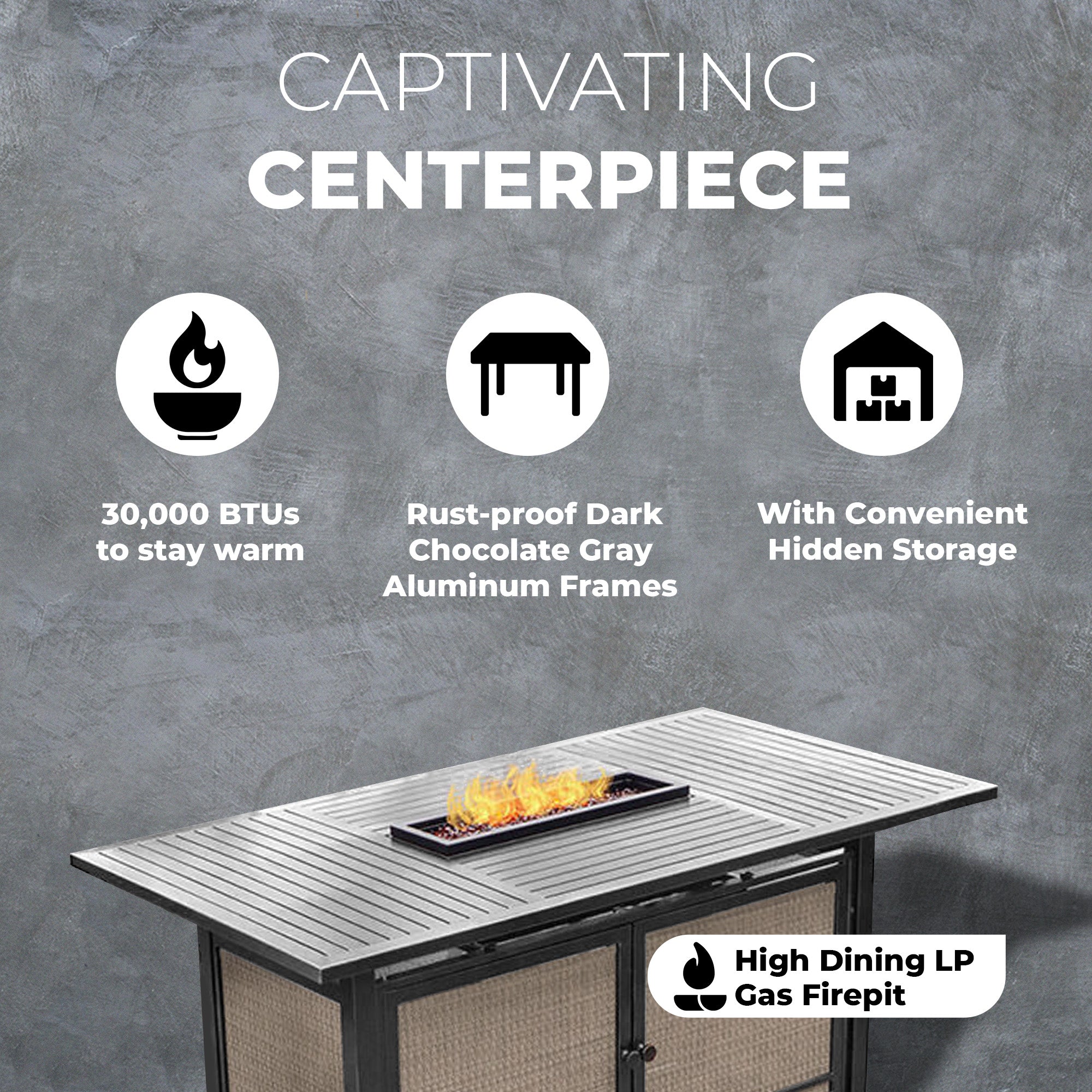 - Experience outdoor dining in style with the High Dining LP Gas Firepit, where sophistication meets functionality
