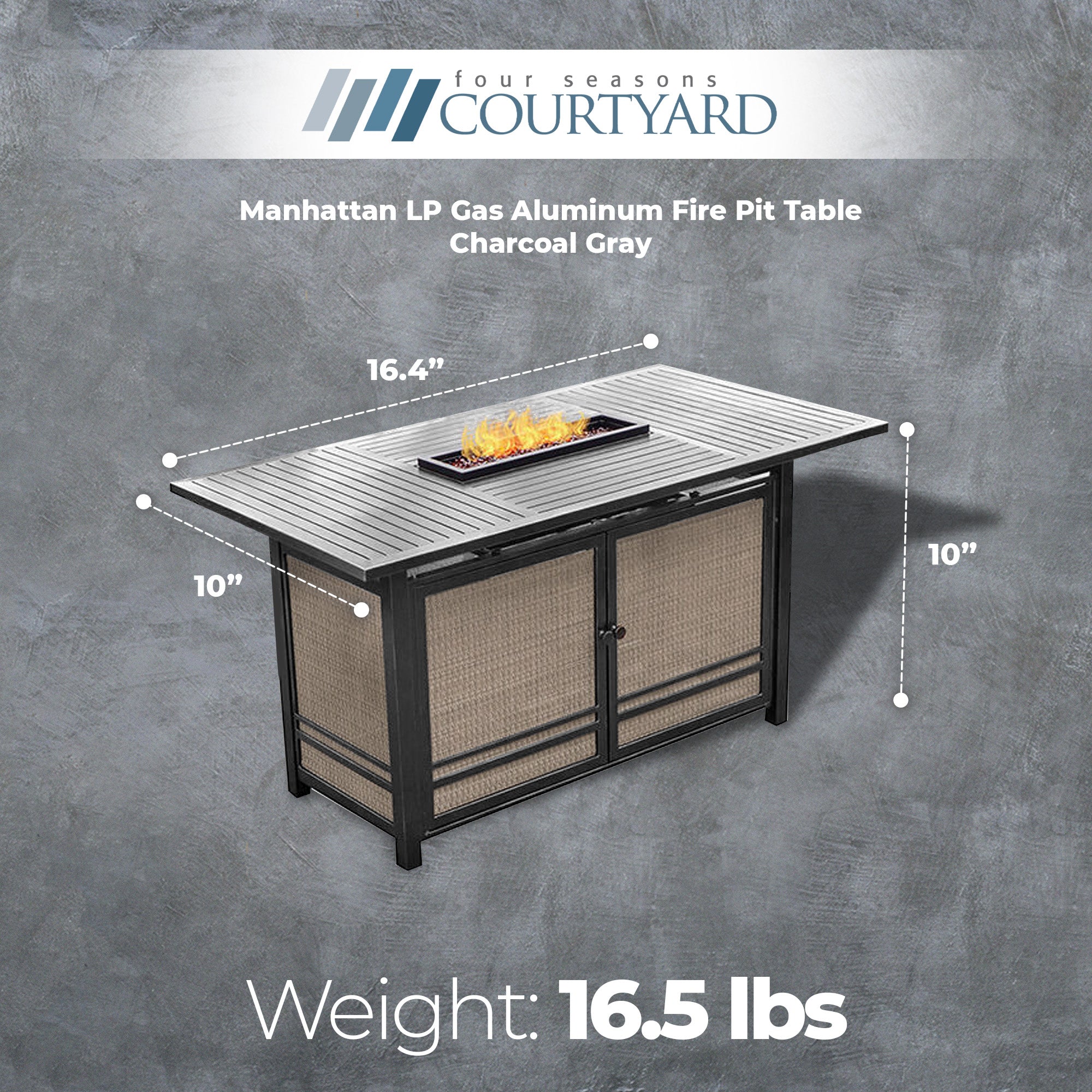 Four Seasons Courtyard Manhattan LP Gas Aluminum Fire Pit Table, Charcoal Gray