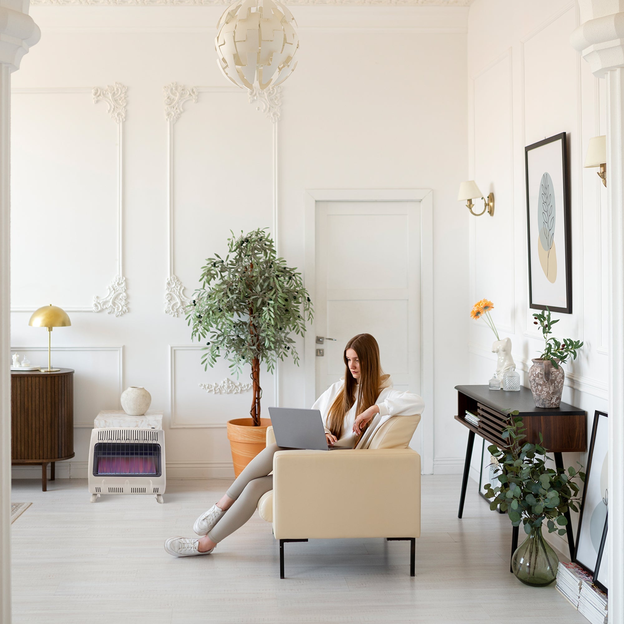Equipped with a thermostat, the temperature of this heater can be easily adjusted. The clean-burning blue flame tube burner uses the natural convection of the burn to evenly circulate cozy air.