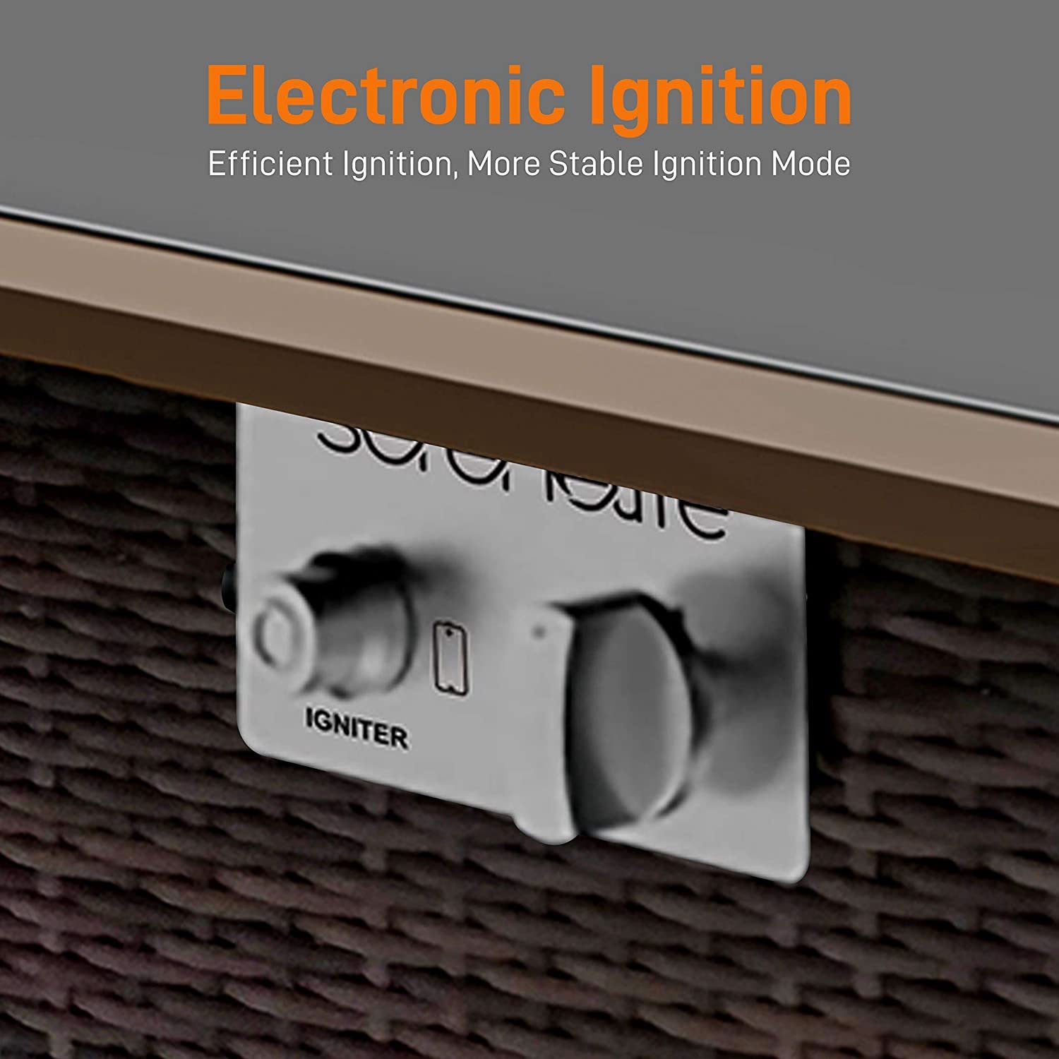 Get the most out of this table all year round. With a glass tabletop surface, you will have all the room you need to take dinnertime outdoors. Featuring a sleek and elegant design, you will have no trouble integrating this firepit into your stylish patio. Designed to be paired with liquid propane, rely on this firepit to reduce ash production and keep your environment clean. The electric ignition is an efficient and more stable ignition mode, great for easy start-up.