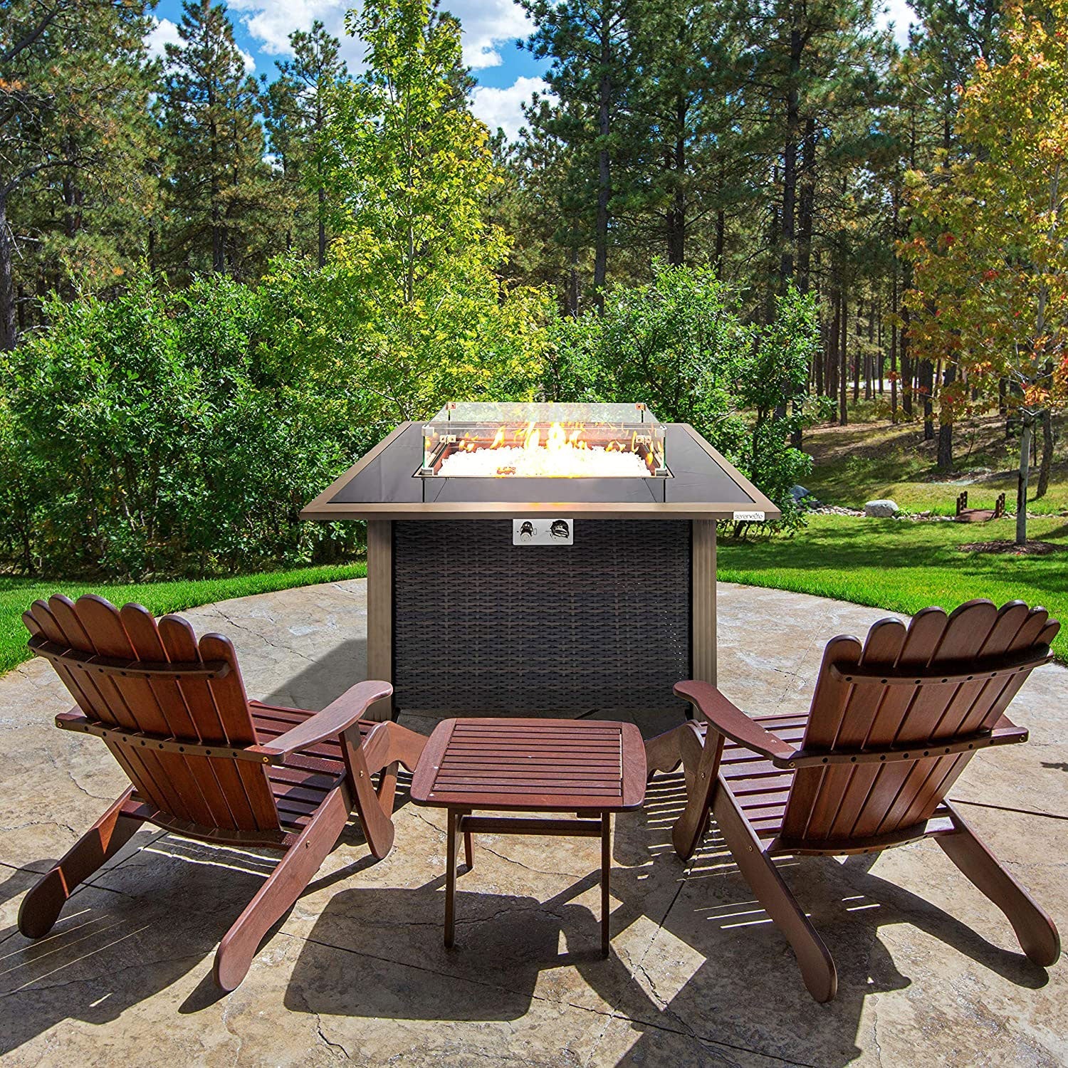Serenelife Outdoor Rattan Patio Propane Fire Pit Table with Glass Guard, Black