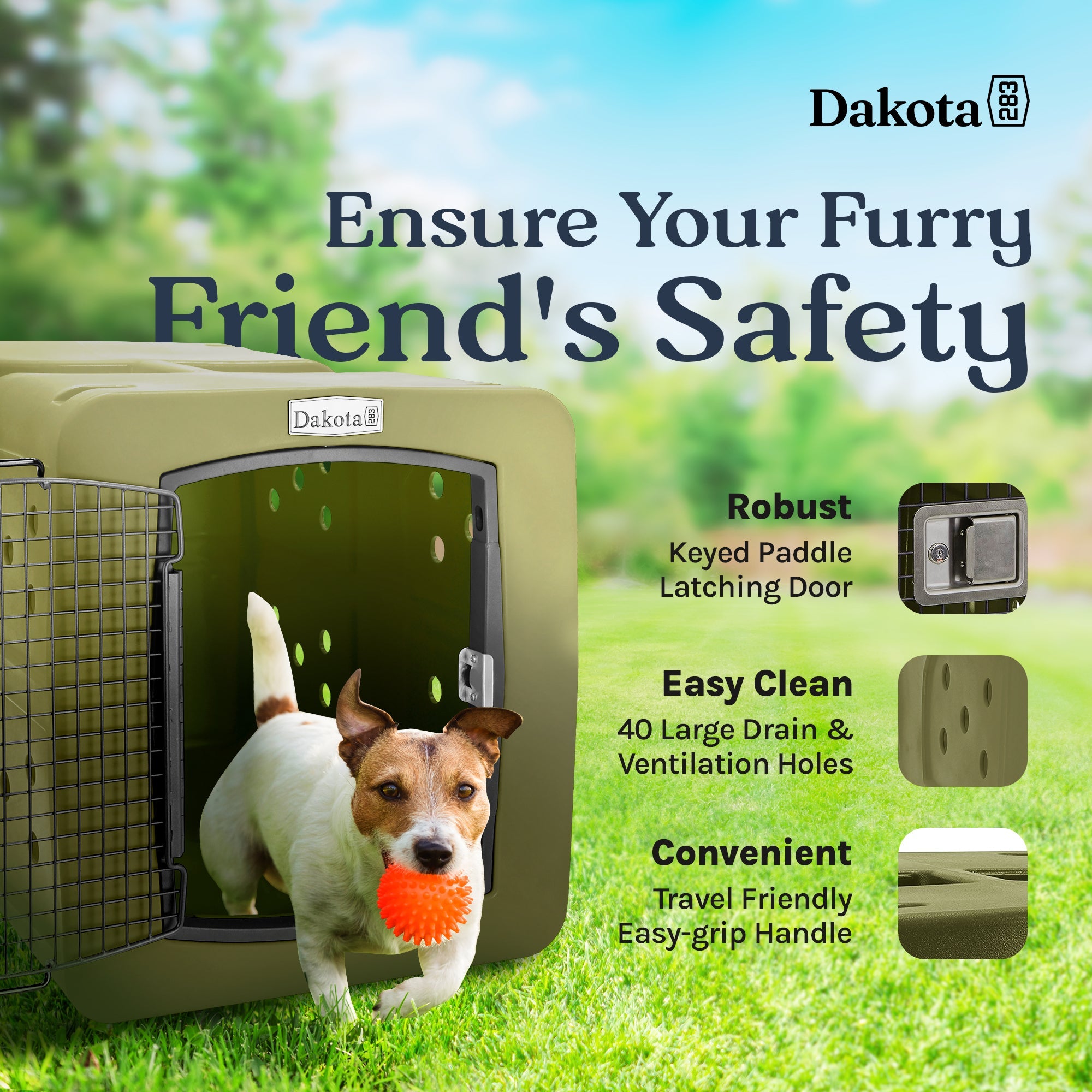 Dakota 283 G3 Large Easy to Clean Dog Kennel w/ Handle & Latching Door, Olive