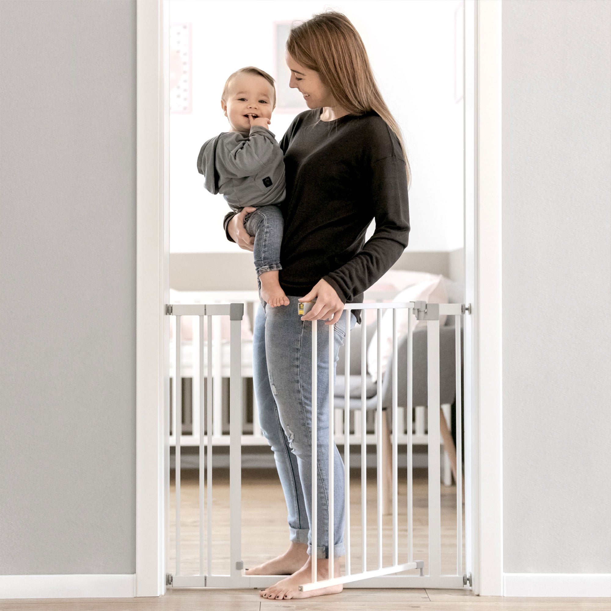 With this pressure-mounted walk-through gate, your safety system will be ready to go in no time while keeping your walls mark-free. This safety essential is designed to be wall-to-wall and is suitable for doorways, stairs, and hallways. With the one-handed operation, keep your little one at your hip as you open and close this gate.