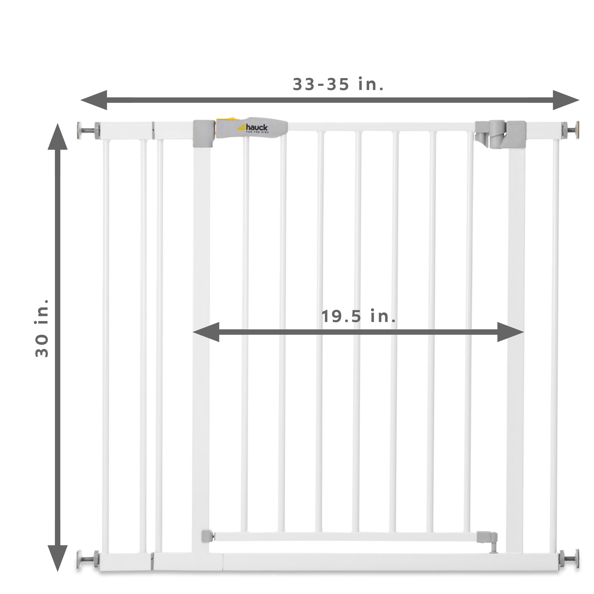 - Accommodates openings 33 to 35 inches wide with the included 3.5-inch extension; Gate without extension measures 29 to 31 inches wide and 30.31 inches tall