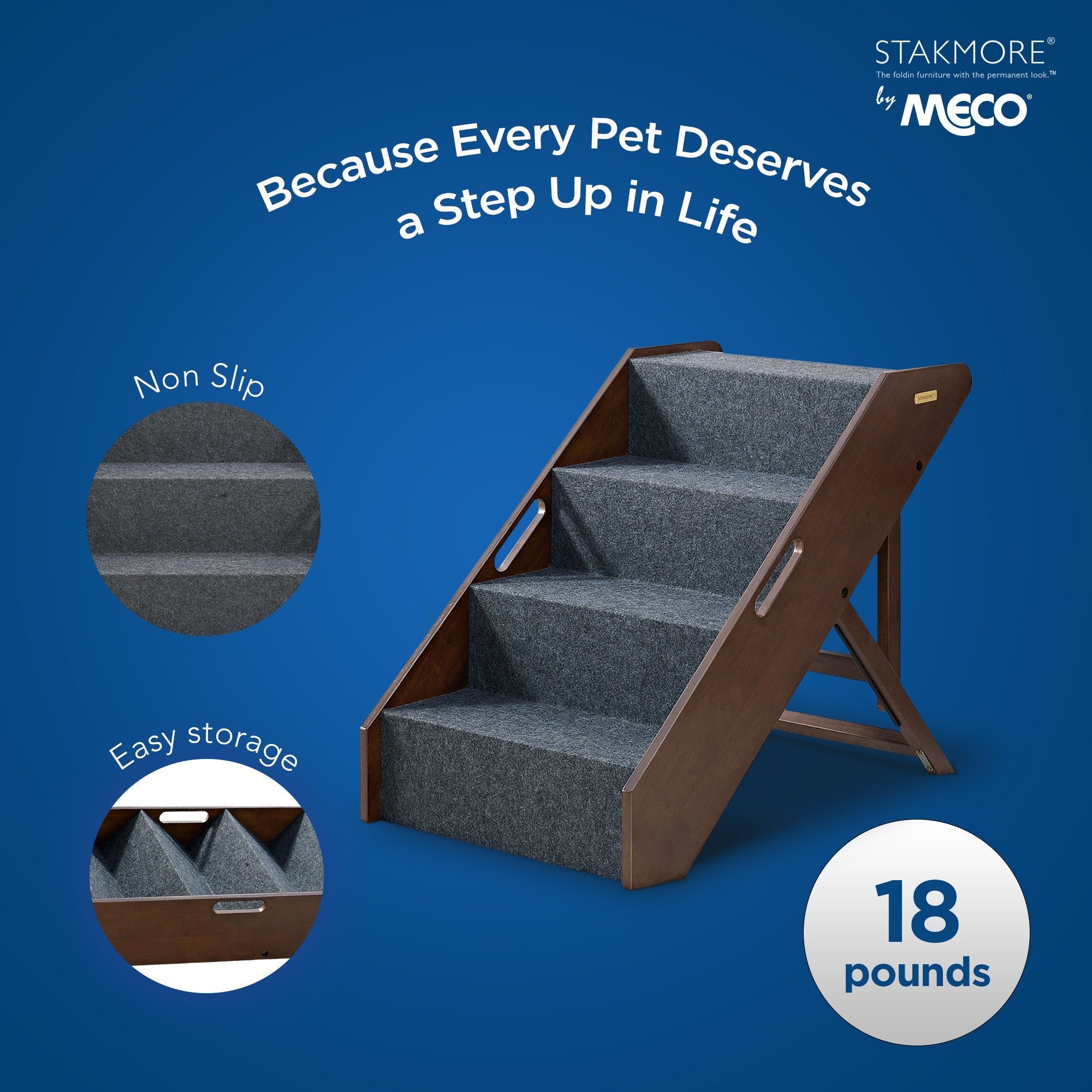 Treat your pet to the ultimate in luxury and convenience with MECO Stakmore Pet Steps because every pet deserves a step up in life. Upgrade their comfort and well-being while seamlessly integrating style into your home décor.