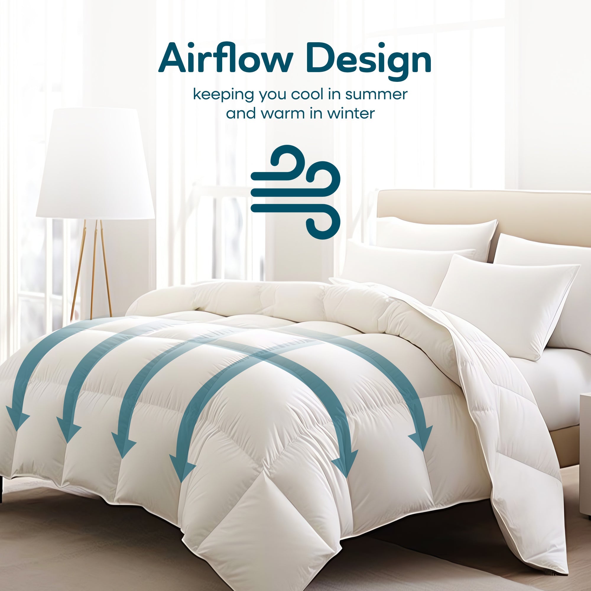 - Unique design promotes consistent airflow, keeping you cool in summer and warm in winter, ensuring a luxurious night's sleep