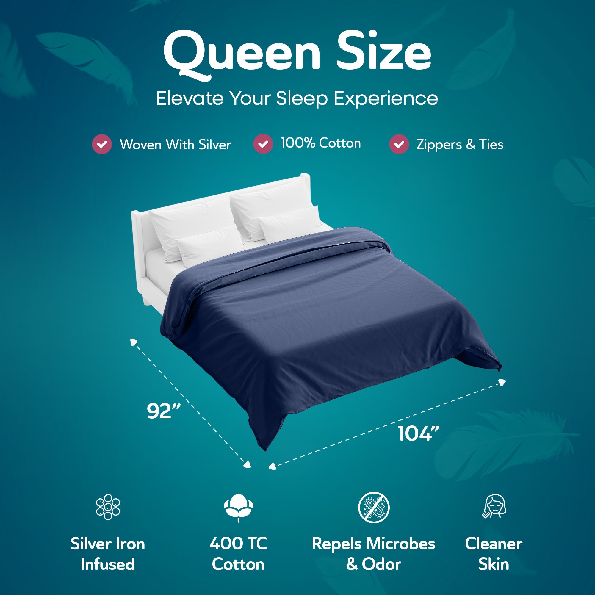 - Real silver woven into the fabric with a patented process provides a 99.9 percent cleanliness effect, ensuring a refreshing sleep environment 2 to 3 times longer than traditional bedding