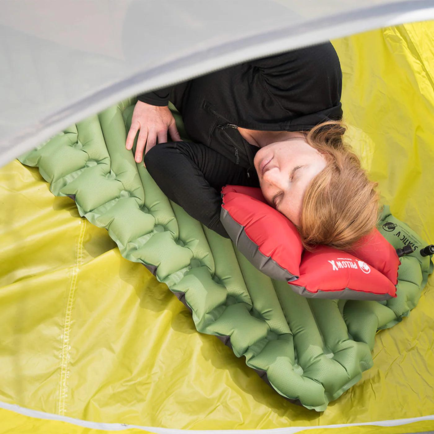 Supportive and ultralight, durable and incredibly comfortable, the Pillow X has an advanced, self-centering X design position that cradles your head for supportive, stable comfort. Simply add or release air to raise or lower pillow height and adjust firmness for customized comfort. Weighing a scant two ounces and packing down to the size of a lighter, this is a luxurious necessity that always fits in your pack. The Pillow X is a backcountry sleep necessity and may be the most technically advanced pillow ever developed.