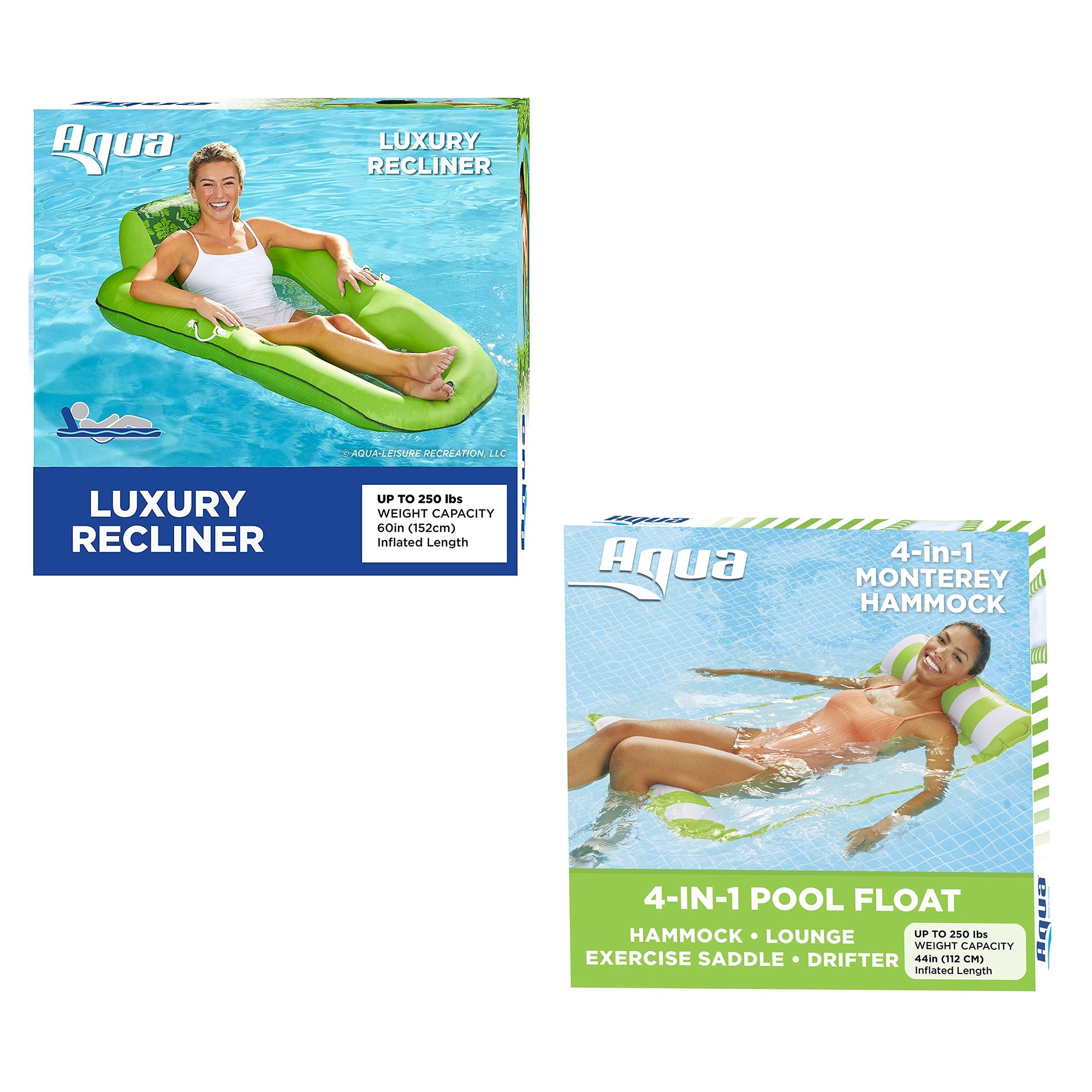 Aqua Leisure Water 4-in-1 Pool Hammock, Lime & Luxury Recliner Float, Green