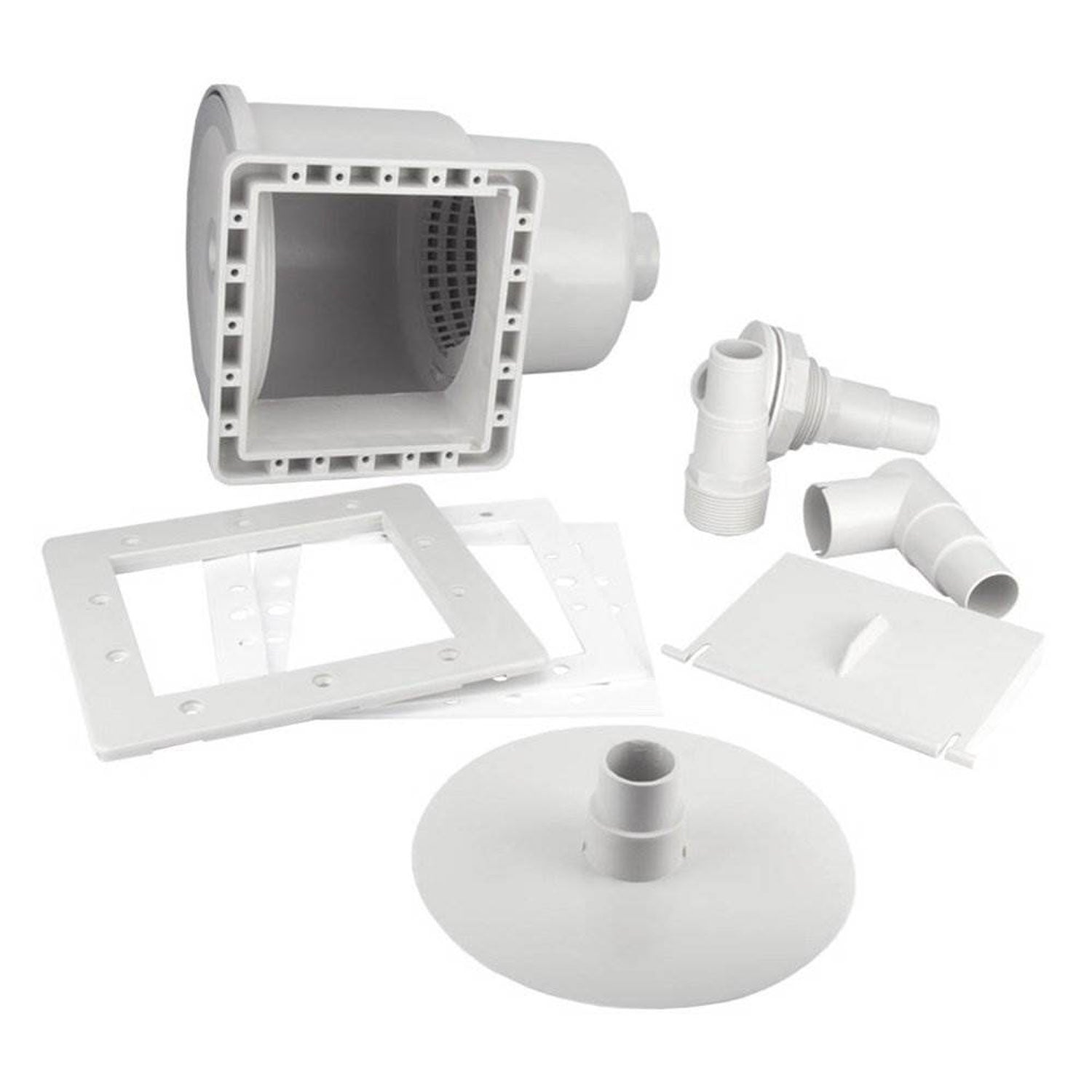 - Replacement standard ABS thru-wall above-ground pool skimmer great for frame pools and deck pools
