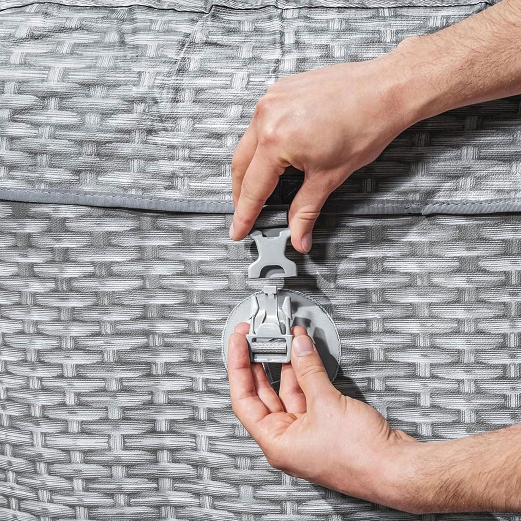 Featuring an AirJet system with 180 jets, this hot tub releases bubbles from the bottom of the spa to create a warm, bubbling hot tub environment. These calming bubbles will help you relax and unwind from the comfort of your home. Whether you're seeking a solitary escape or hosting a gathering of friends, this spa caters to your every need. Built with durable DuraPlus materials to avoid damage, you can ensure this hot tub retains its shape after repeated inflation and deflation. Including a FreezeShield with an automatic heating function, this hot tub's inner components will not freeze during colder temperatures. The true game-changer is the included EnergySense Cover, which not only ensures the water remains at the ideal temperature but also conserves energy, making it a great choice. Meanwhile, the SaluSpa Spa Seat offers customizable height and non-slip, weighted feet for stability. These seats ensure comfort and durability, are easy to clean, and are adaptable to any SaluSpa model.