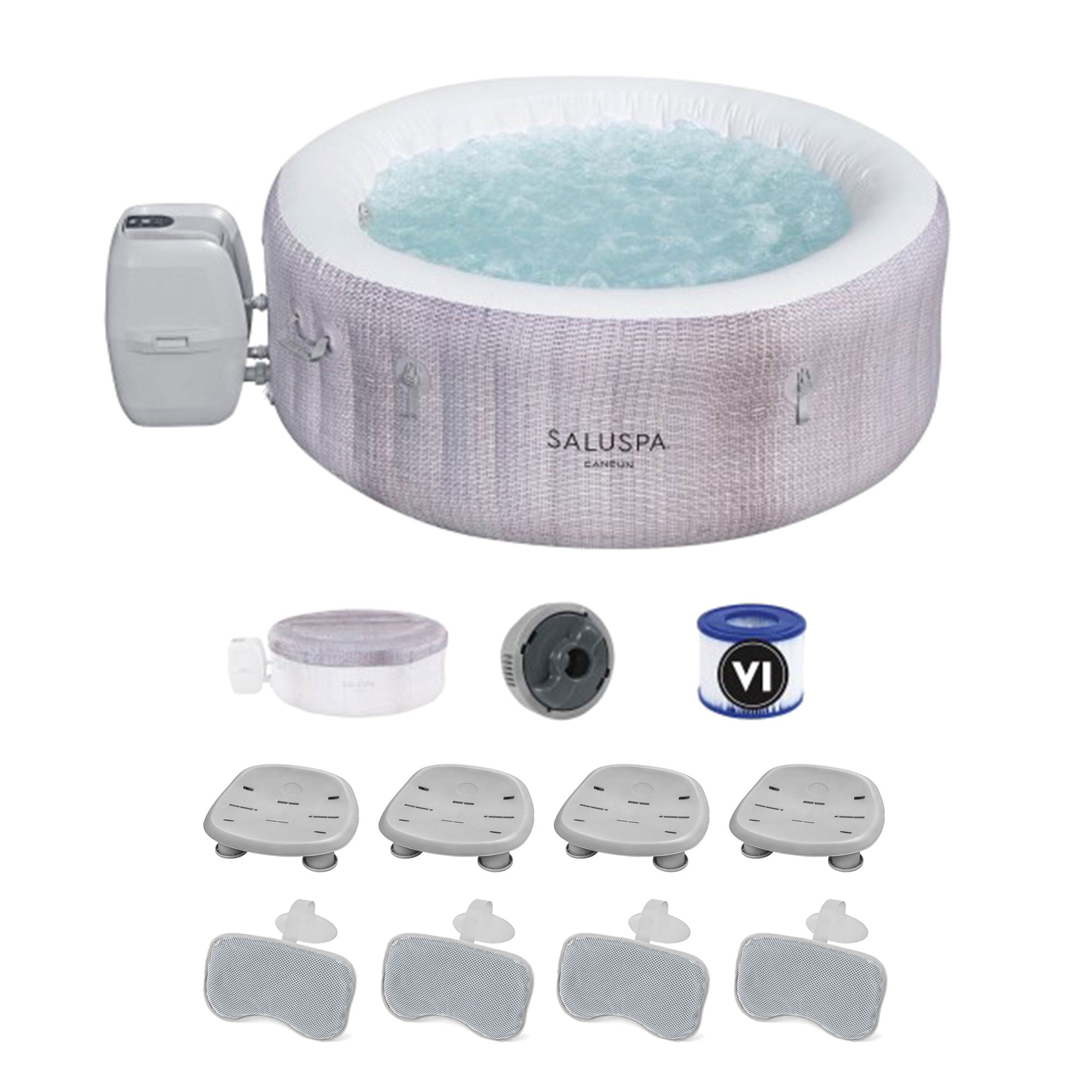 - Provide you with a retreat where relaxation meets opulence with the Cancun SaluSpa Hot Tub and the luxurious SaluSpa Spa Seat with 4 Headrest Pillows, enhancing your well-being and bringing a touch of indulgence to your daily life