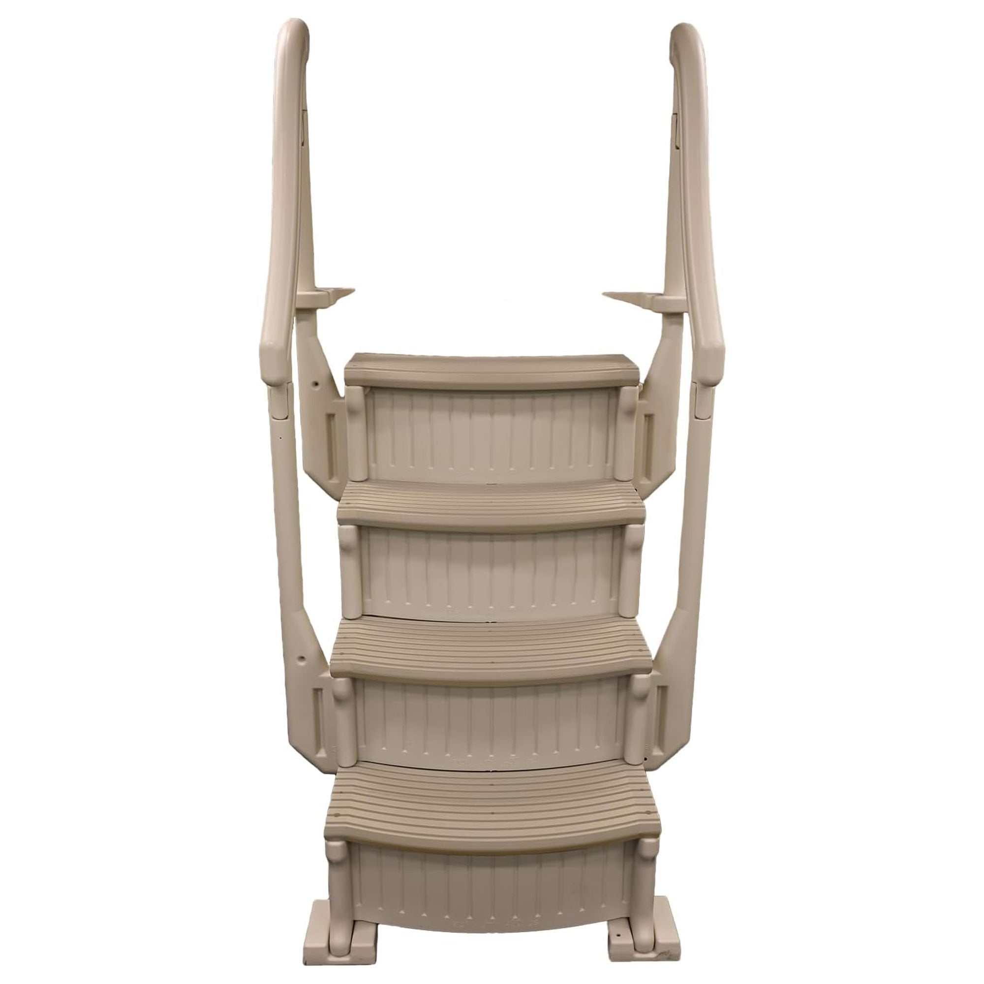 Featuring a classic light beige color, these above ground pool steps complement any pool. The curve system has the sweeping “wedding cake” look that many homeowners want in a pool step, and you can customize the stairs by curving the treads inward or outward depending on your desired look. The eye-catching, sloping handrails offer reliable stability while the capacity of up to 400 pounds accommodates swimmers of all sizes.