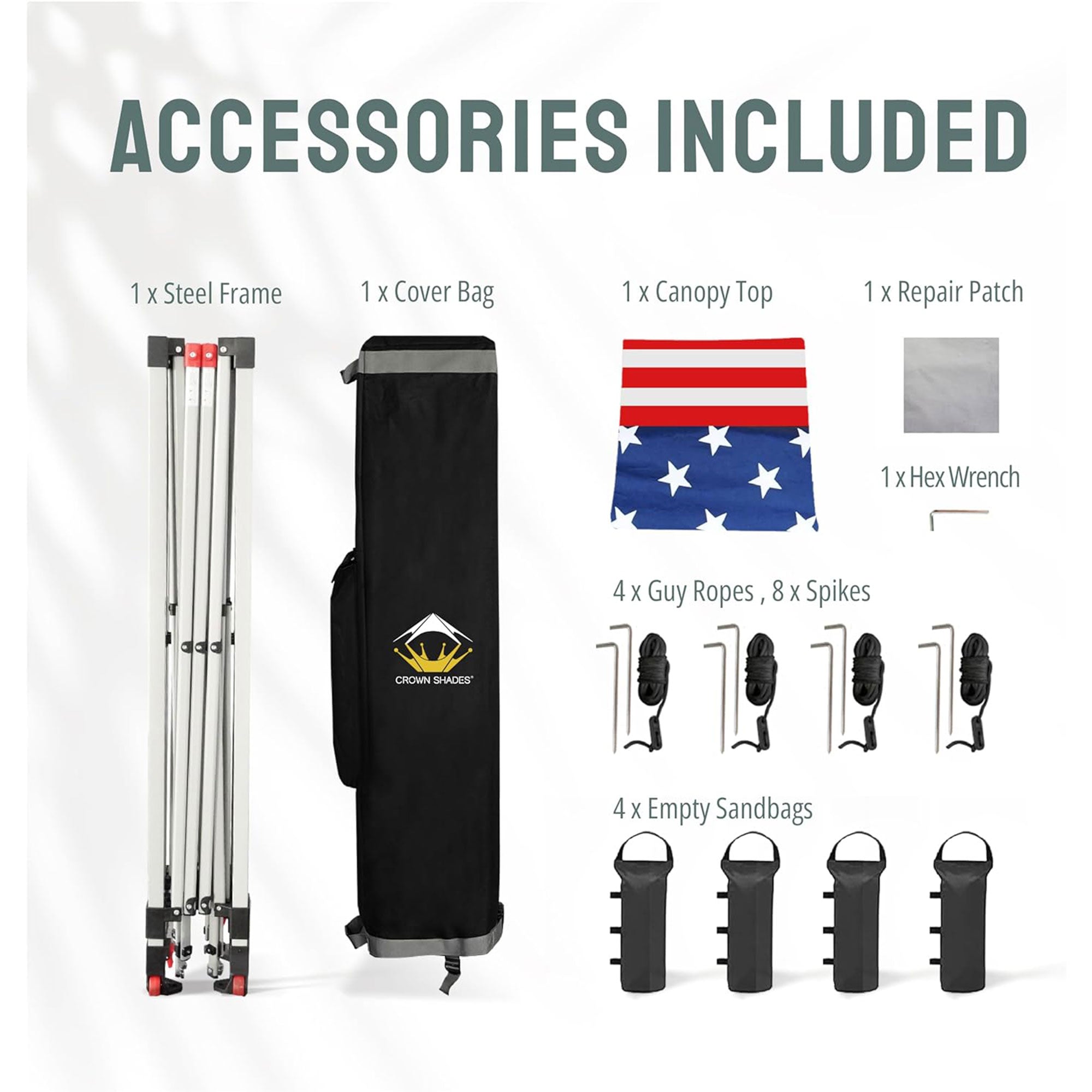 CROWN SHADES 10x10 Ft Outdoor Canopy Tent with 1 Push Lock, American Flag