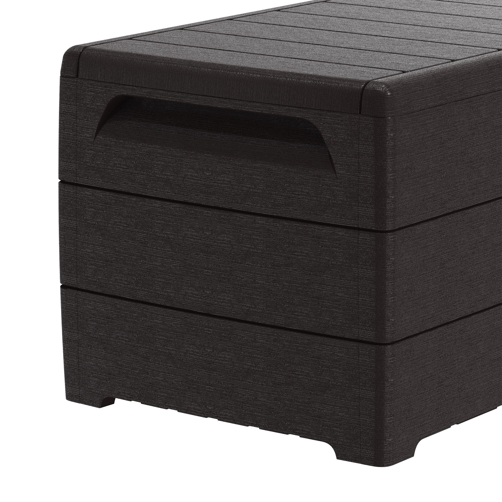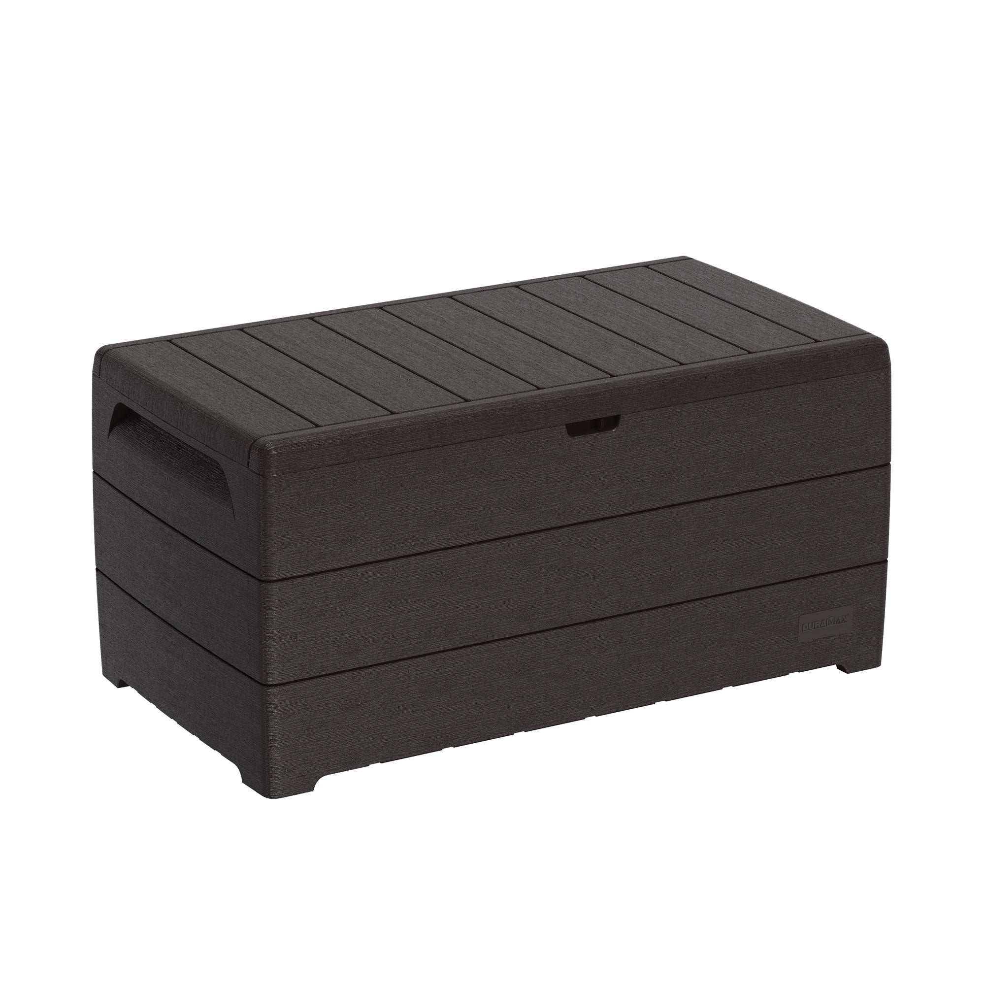 Constructed of a durable polypropylene resin this box is fully weather-resistant while providing a secure seal that keeps your items dry and effortless ventilation to prevent mold, mildew, or stale smells between uses. With built-in handles and wheels, you can transport this box easily and efficiently to any outdoor space. Perfect for terraces, patios, porches, decks, balconies, docks, gardens, and more, you'll love the versatility and extra storage this deck box offers.
