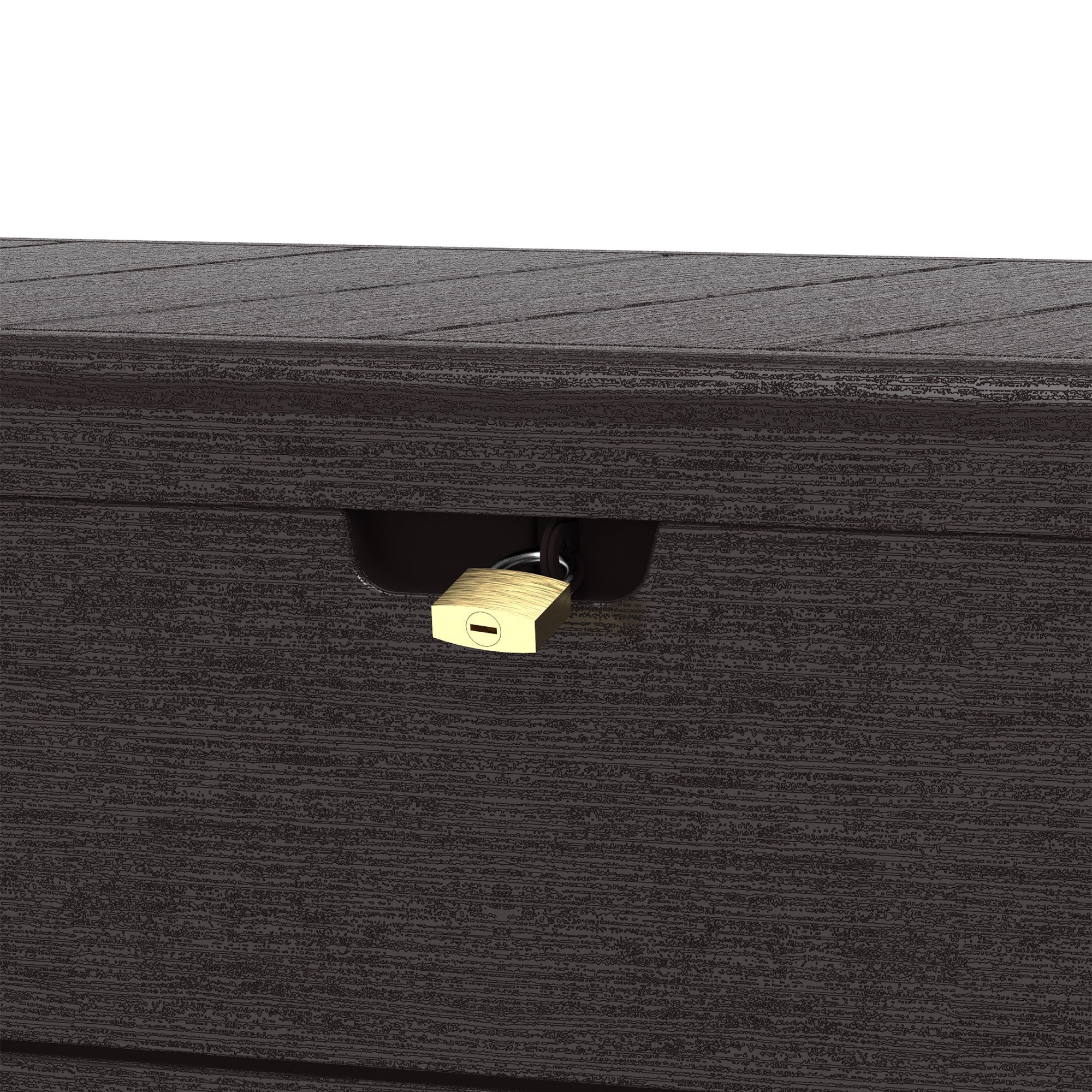 - Heavy-duty deck storage box doubles as a comfortable outdoor bench for up to 2 people adding versatility and function to your outdoor space