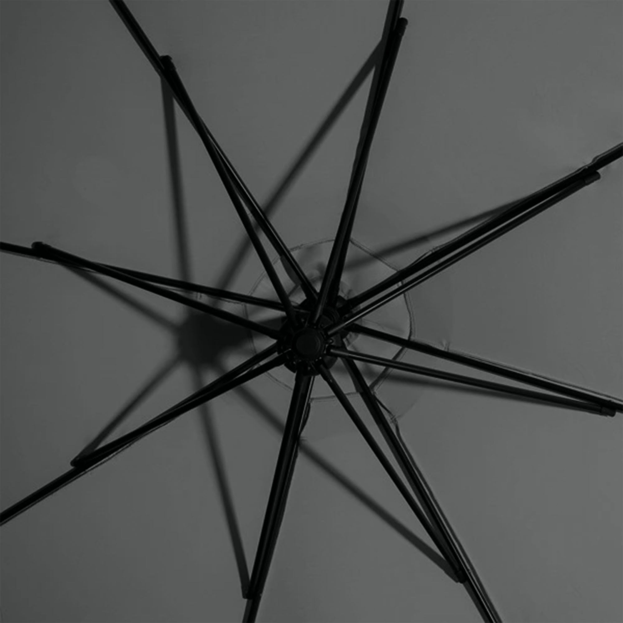 - Charcoal gray hue of the umbrella complements various outdoor decors, adding a modern touch to your al-fresco experience