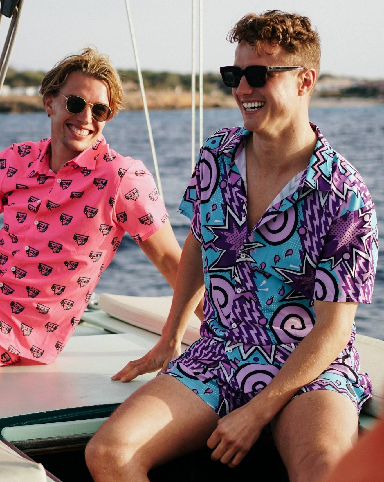 Our shirts are a relaxed fit with short sleeves, featuring some delicious prints that will turn heads at Beach clubs, yacht holidays, hot tub parties or just down your local pool.