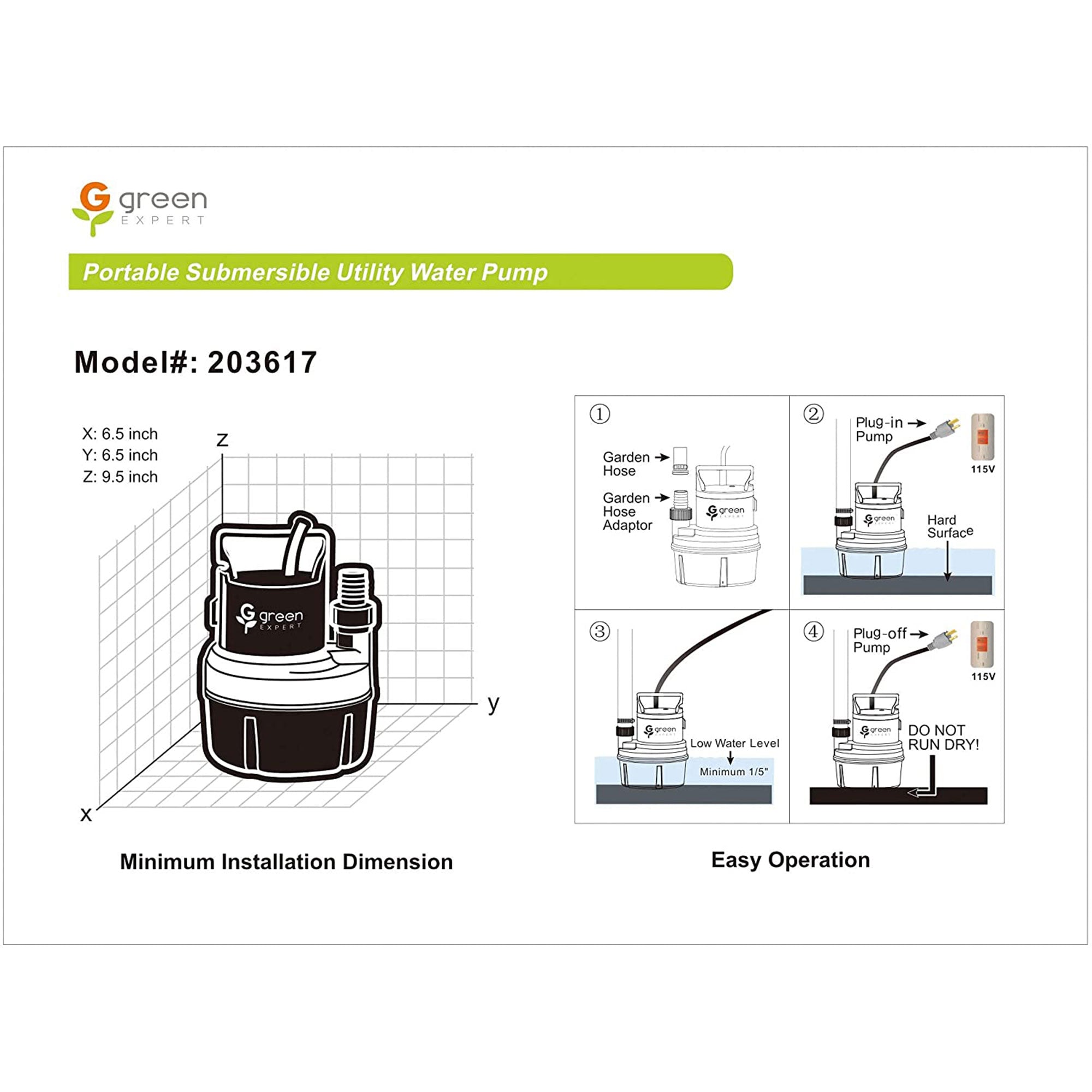 Helping you clean up messes or remove water from a flooded basement, the G green EXPERT Submersible Handy Utility Pump for Household Pool Water Removal keeps water out to reduce damage and improve the look of your home or landscape.