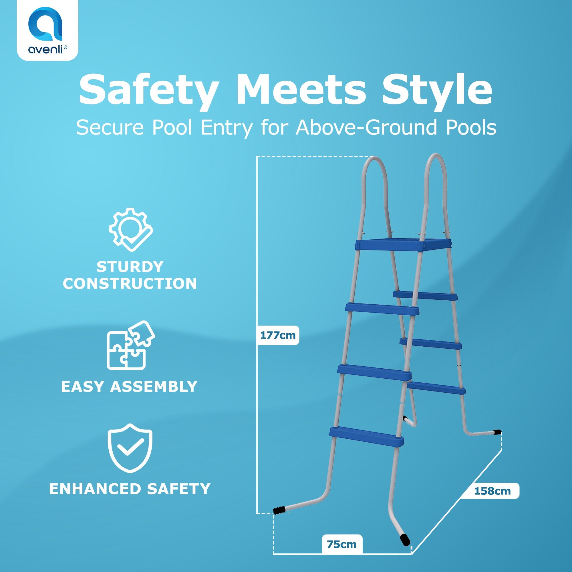 Made especially with above ground pools in mind, this pool ladder is made of a heavy-duty, rust-resistant galvanized metal frame and durable plastic steps. The steps have a slip-resistant surface designed to handle wet feet. The arm rails and top step make it safe and easy to turn around while getting in or out of the pool. It also features a convenient platform at the top of the ladder to make getting in and out of the pool much easier.