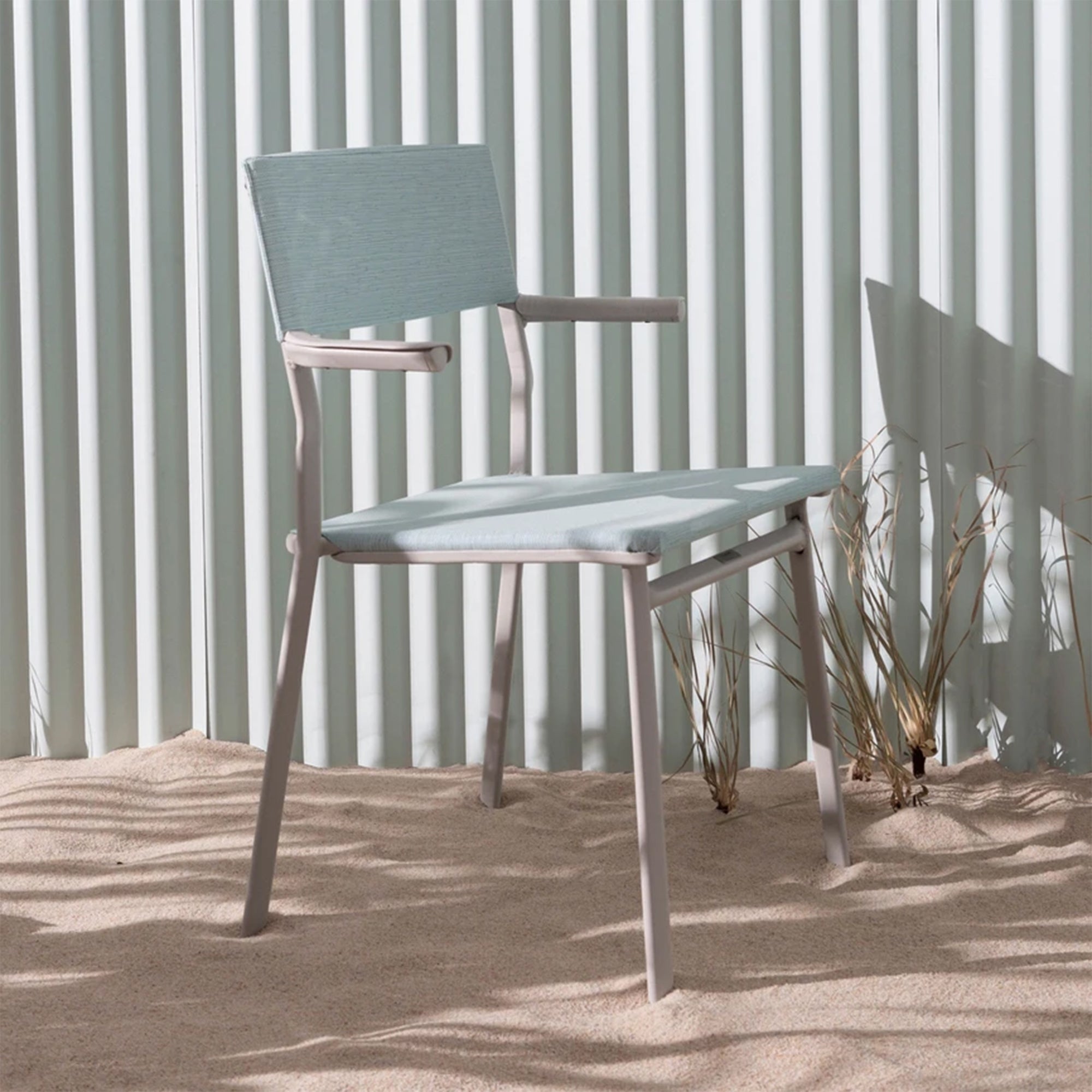 Built with a sturdy and durable base made from recycled aluminum and plastic, this armchair is lightweight, rust-free, UV and weather-resistant to withstand the elements while supporting up to 287 pounds. The tear-resistant Batyline Iso fabric is suitable for outdoor furniture around swimming pools or harsh weather, as the open weave design doesn't retain water.