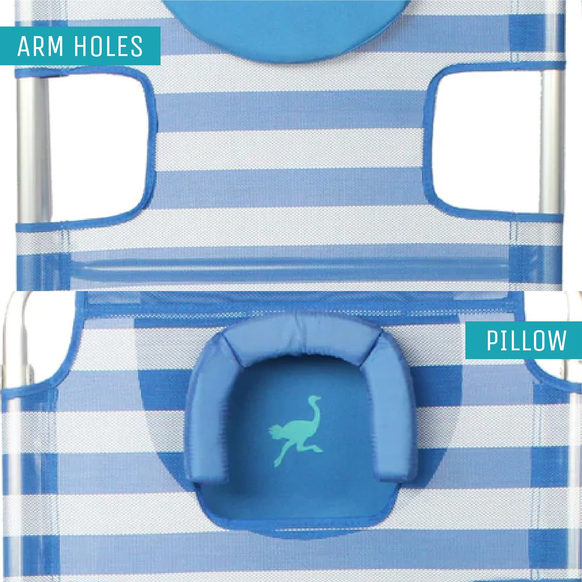Ostrich 3N1 Altitude 16'' Recline Beach Chair & On Your Back Chair, Striped Blue