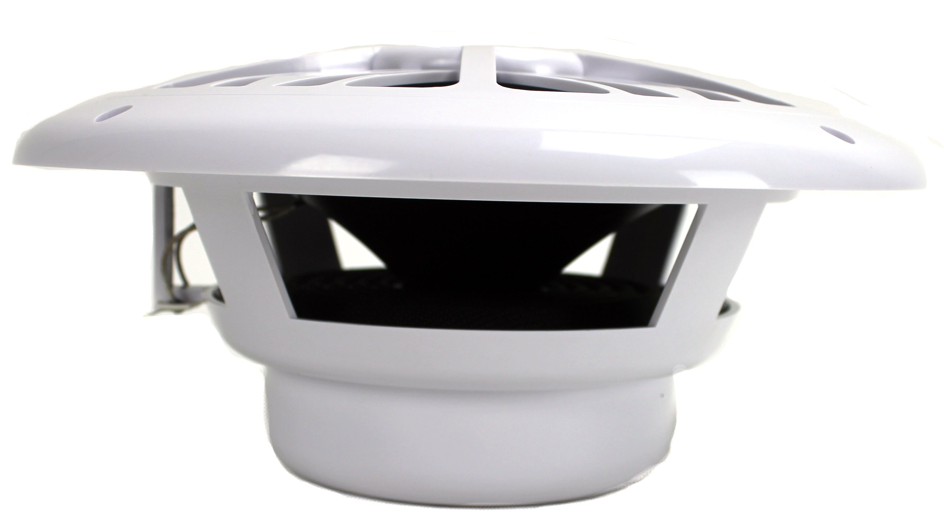 These white PYLE PLMR82 speakers are equipped with a ½” neodymium dome tweeter for rich highs and a 1.5” aluminum voice coil for accurate sound reproduction. The molded ABS plastic basket keeps your sound distortion-free. Includes wires.