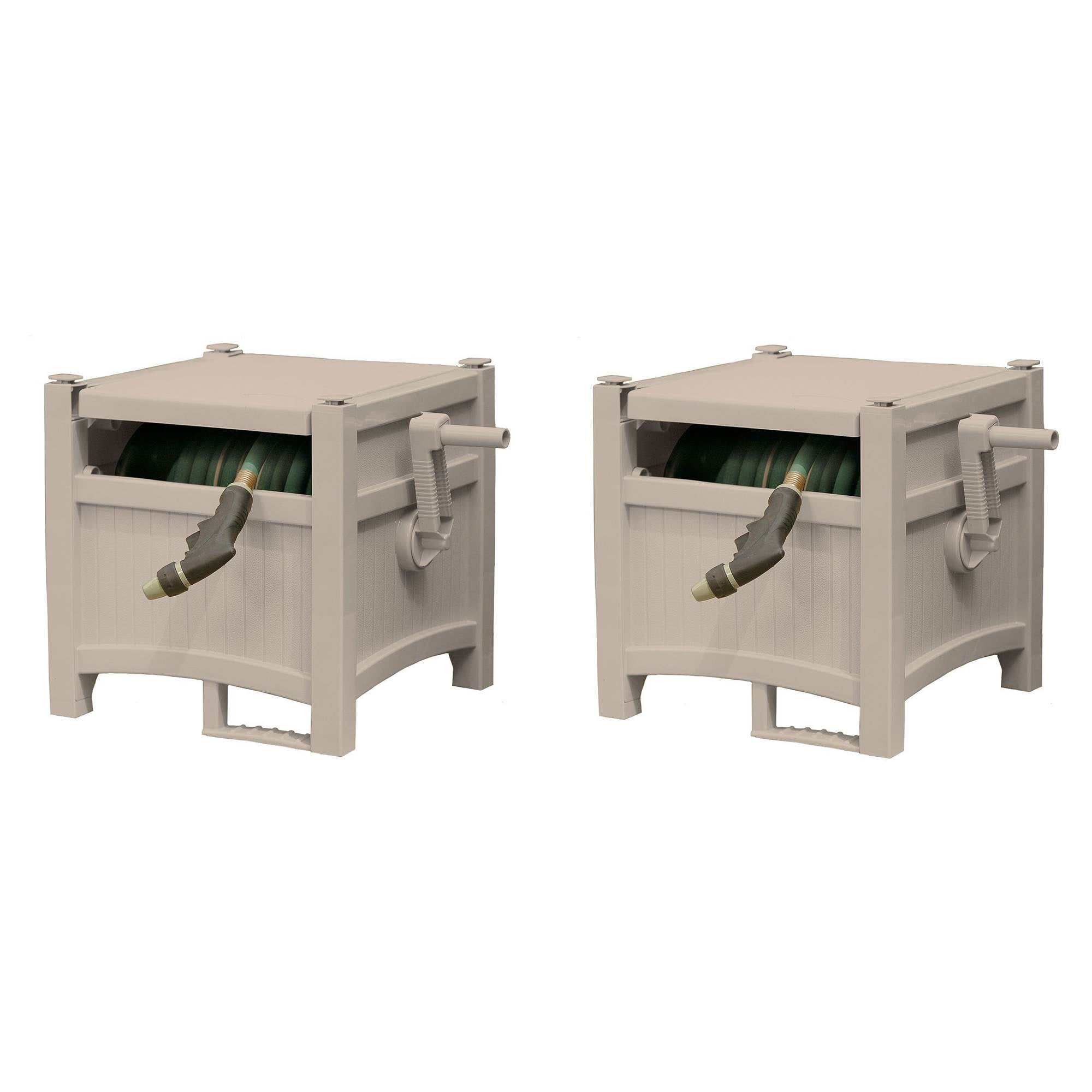 Suncast 100 Ft Capacity Stationary Resin 5/8" Garden Hose Reel Hideaway (2 Pack)