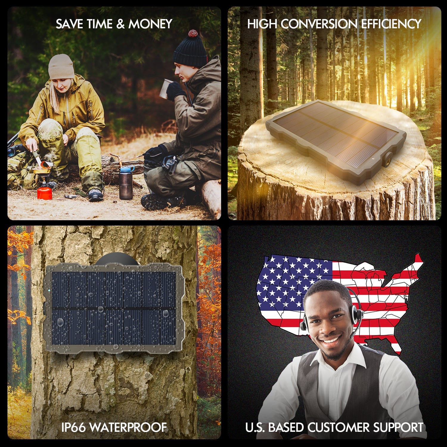 - Money-Saving – Remove the need of having to change out your expensive Trail Cameras batteries and waste time every 2-3 weeks by using our eco-friendly solar power solution. This is the most cheapest and efficient powering option to help you power your cam 24/7.
