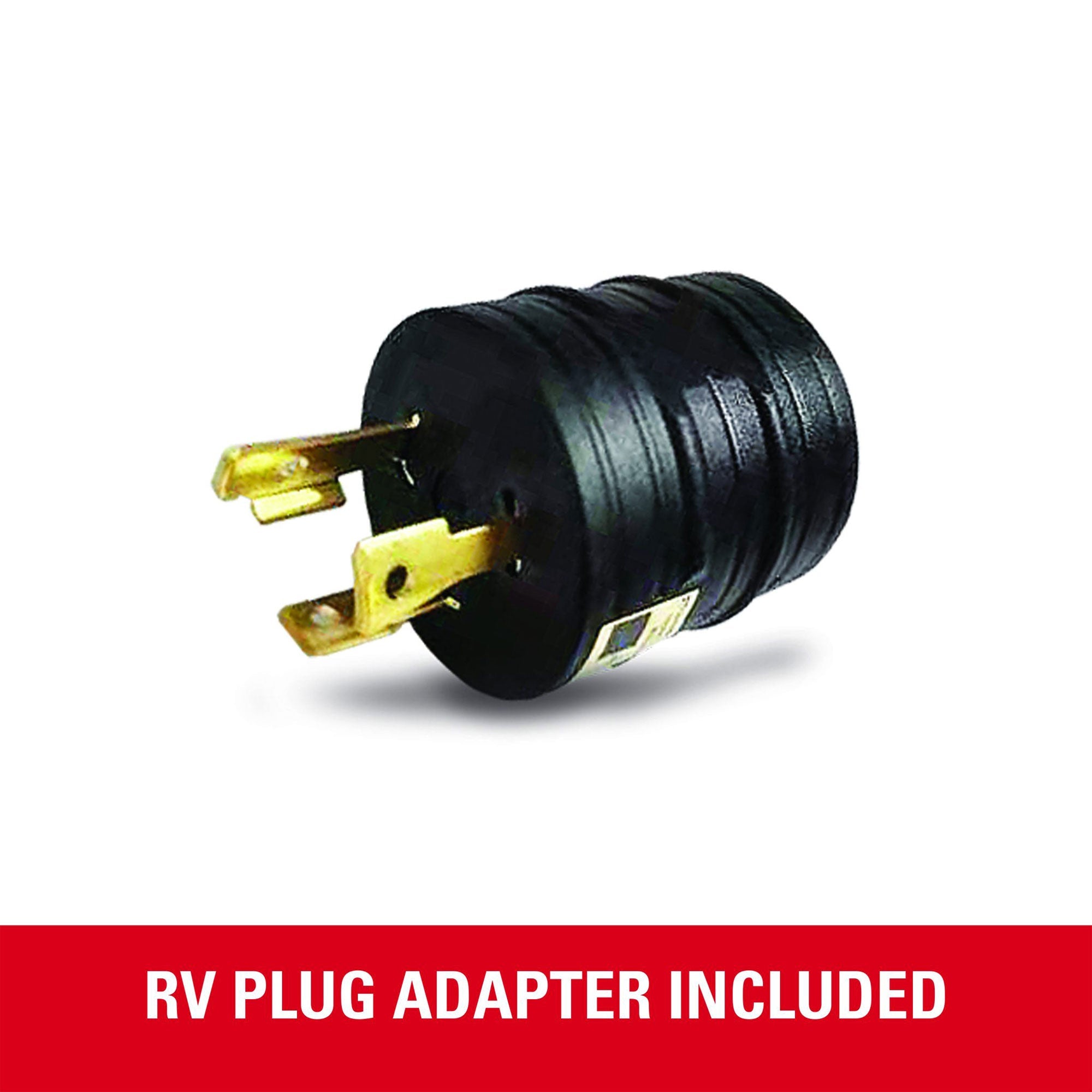 Thanks to its 1.5-gallon gasoline fuel capacity and efficient design, you can enjoy a generous 9-hour runtime at 50 percent load, giving you peace of mind during extended usage. Plus, the easy-access data center provides real-time insights into fuel levels, wattage, and remaining runtime, keeping you informed at all times. Featuring a variety of outlet types including 120V (5-30R), 120V Duplex (5-30R) GFCI, and 12V DC Automotive, this generator offers versatility to meet your various power needs. And with the included RV adapter, you're all set for your outdoor adventures.